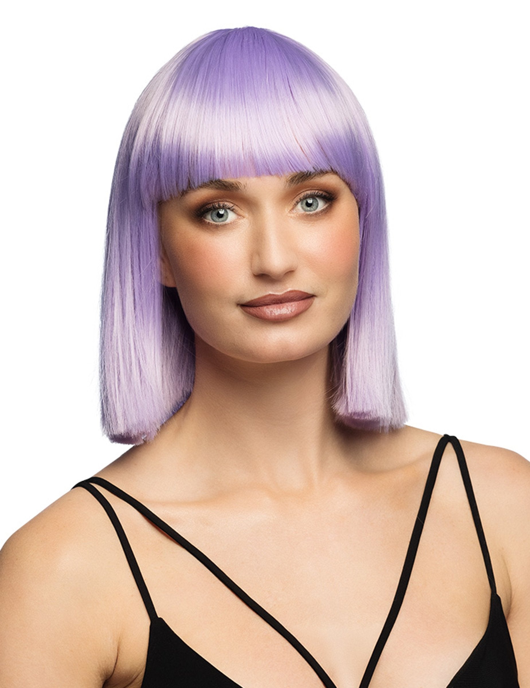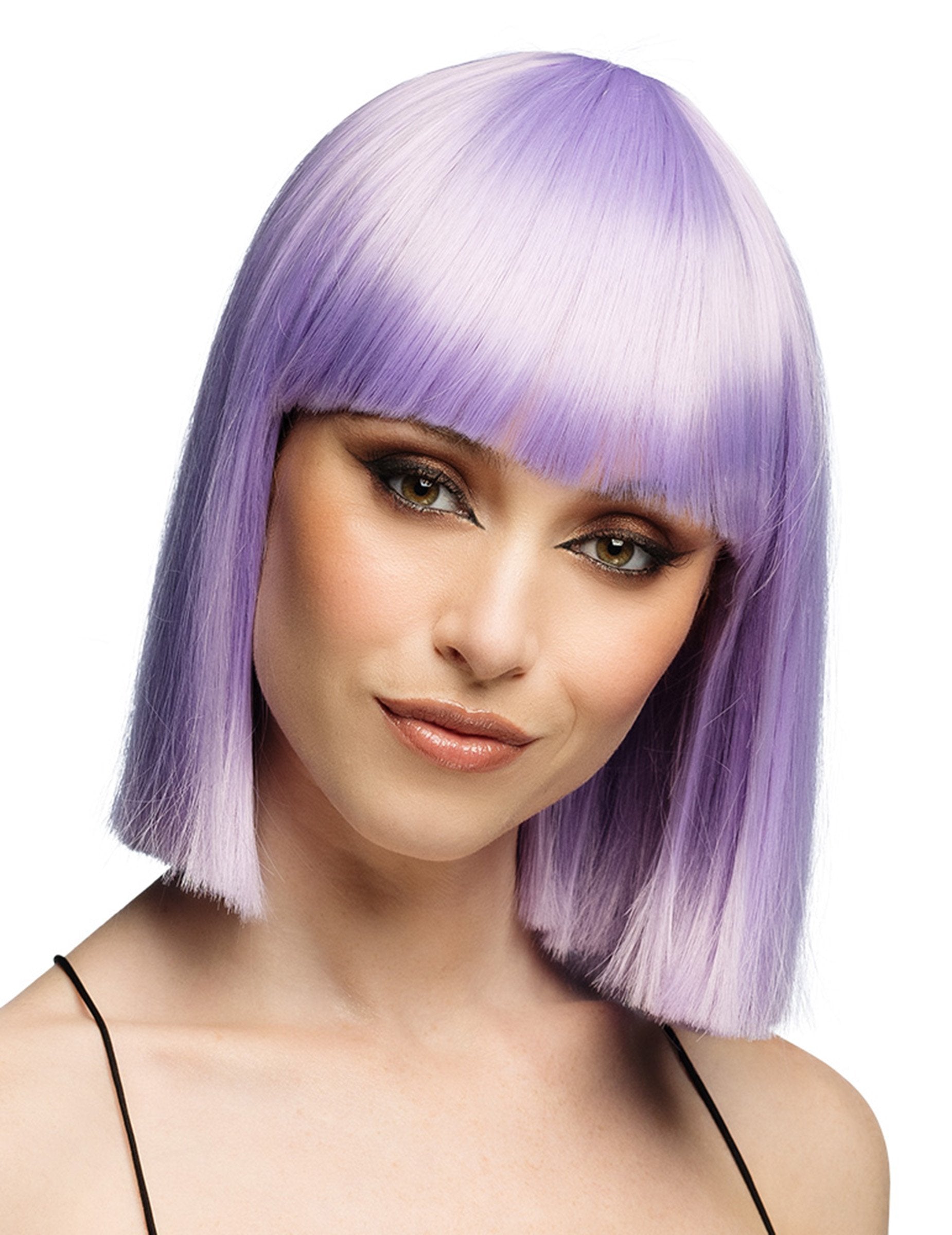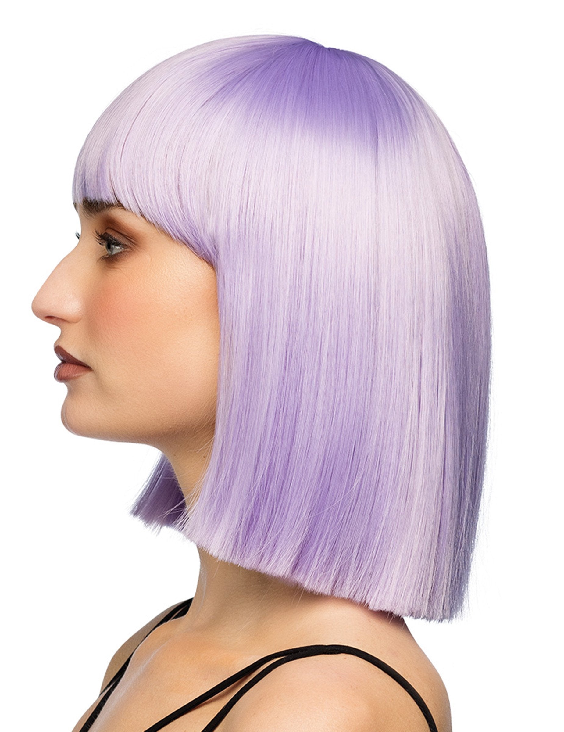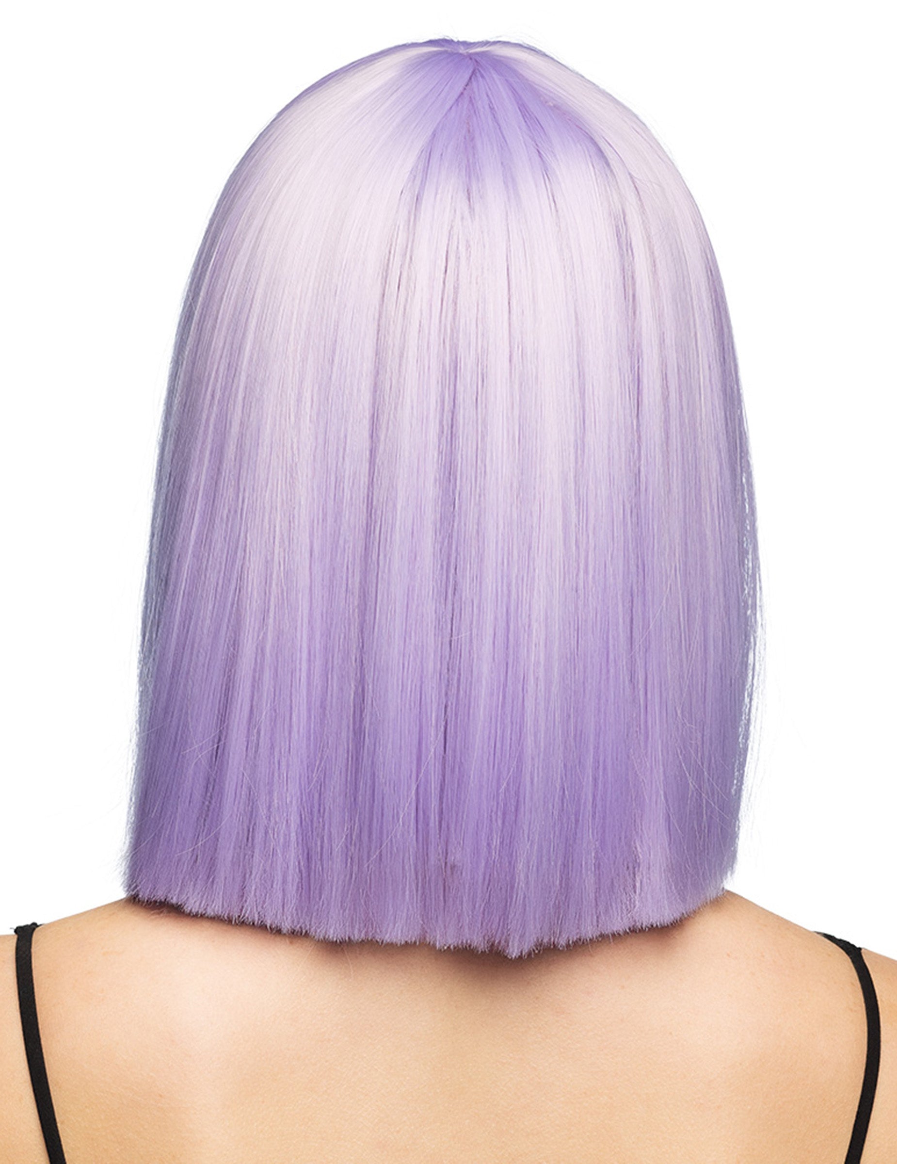 Ova luksuzna perika u pastelno-lila boji s kratkim ravnim rezom i ravnim šiškama trenutno mijenja vaš izgled. Dizajnirana za udobnost i estetiku, ima podesivu mrežicu koja odgovara svim oblicima glave.