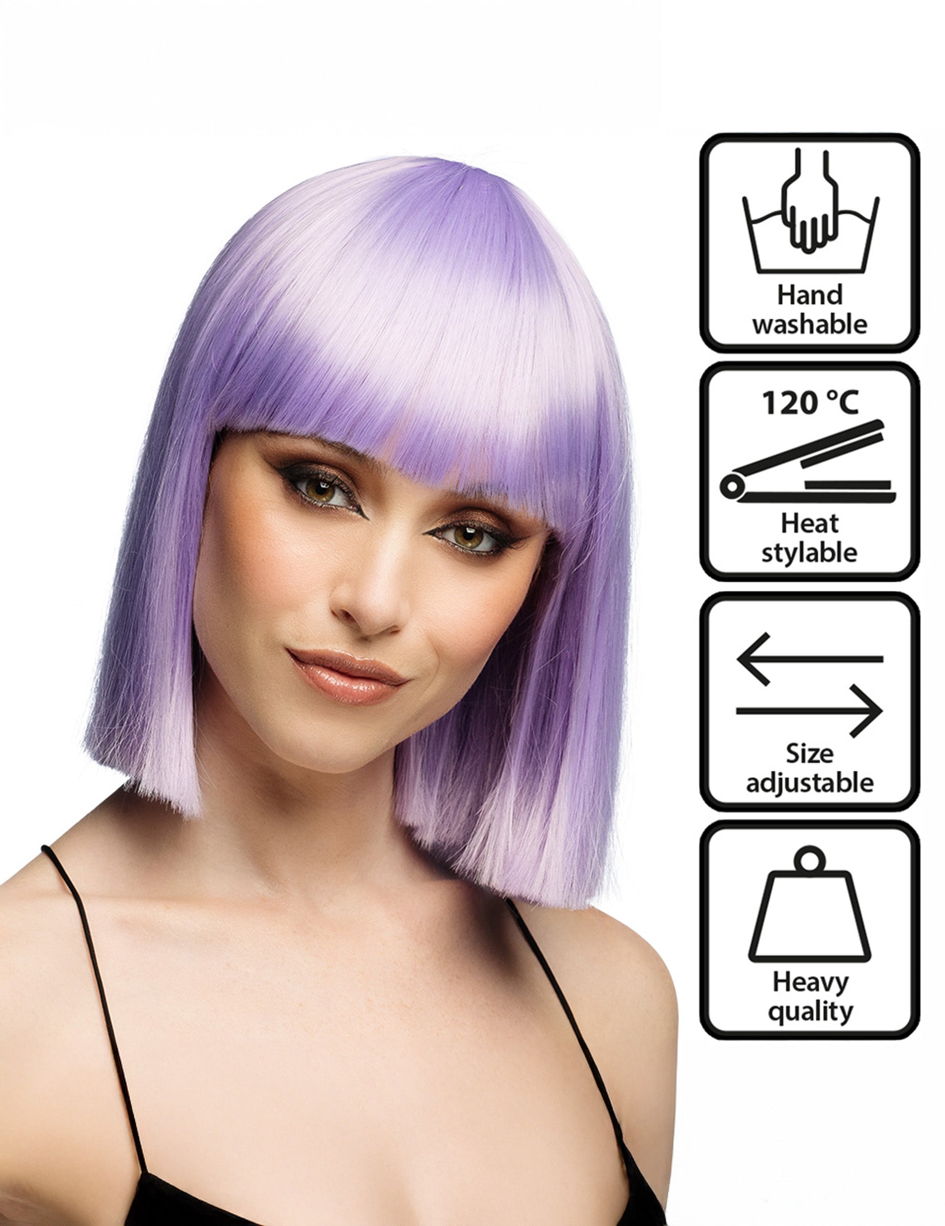 Praktična i izdržljiva, može se prati ručno i podnosi oblikovanje do 120°C, kako biste mogli kreirati različite frizure. Savršena za karneval, Halloween, predstave ili cosplay.