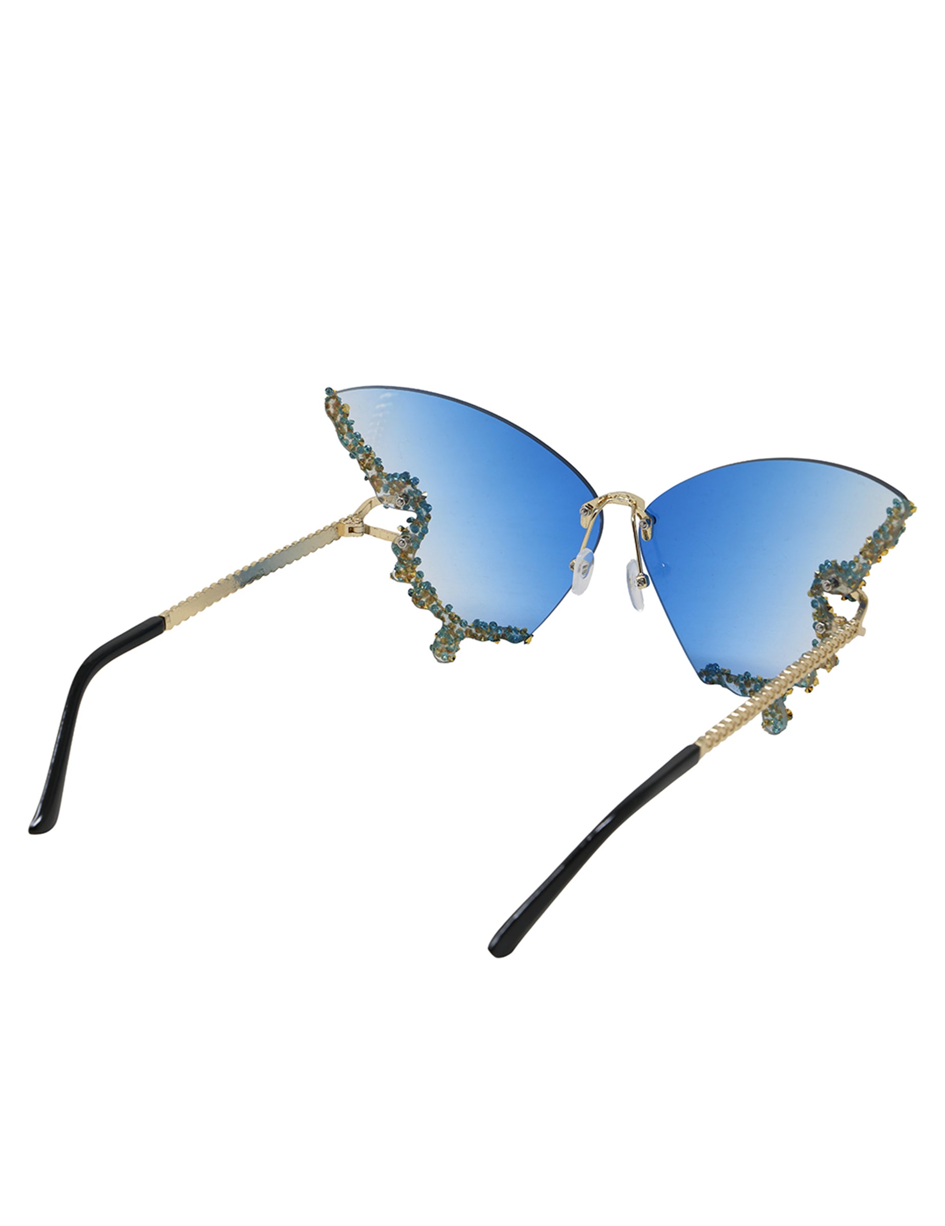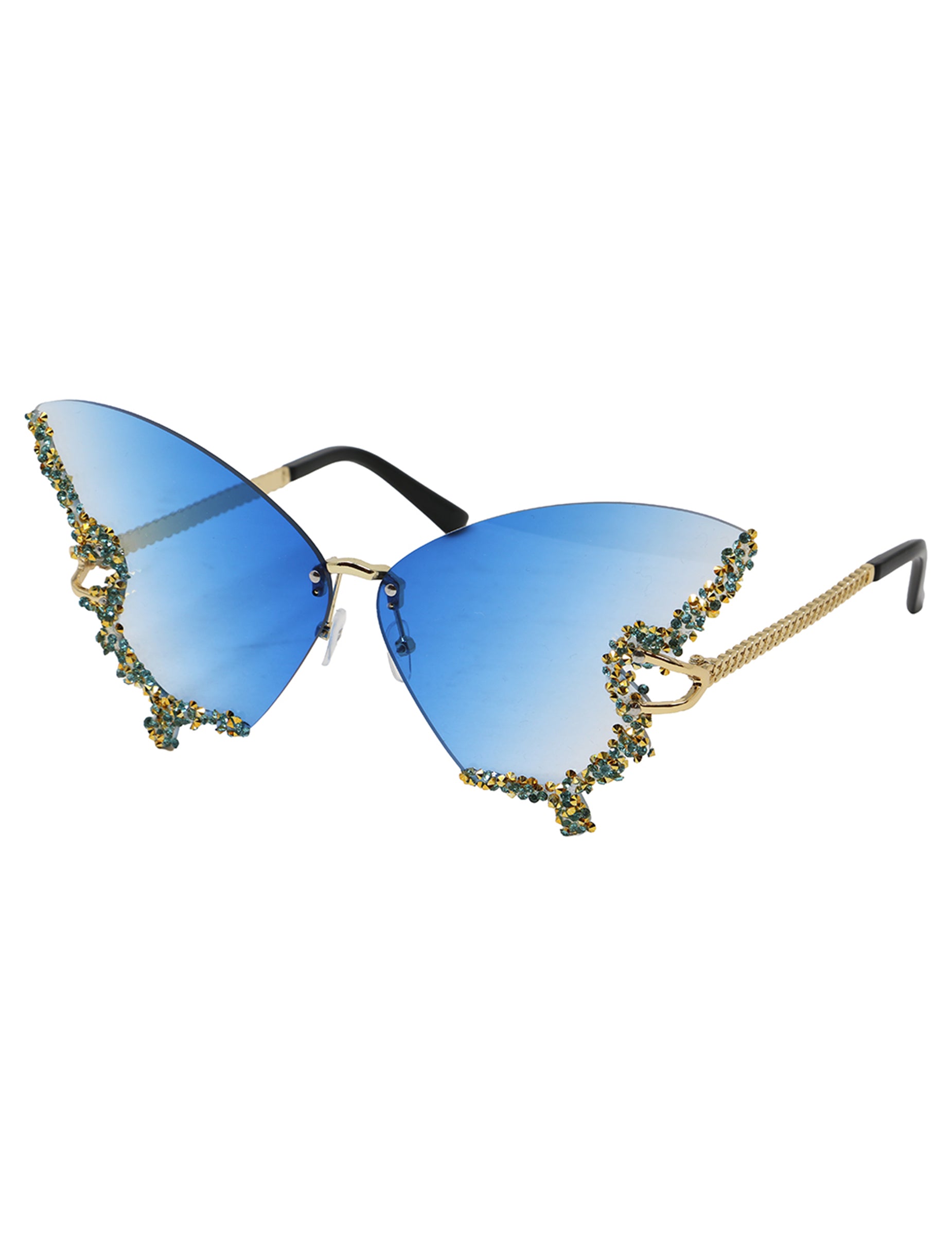 Istaknite svoj izgled s ovim leptir naočalama ukrašenim sjajnim kristalima. Njihov okvir u obliku leptira s plavim staklima u nijansama donosi profinjen i originalan dodir, savršen za upotpuniti kostim ili dodati detalj uz svečanu odjeću. Lagane i udobne, idealne su za zablistati na festivalu, maskenbalu ili glamuroznom događaju.