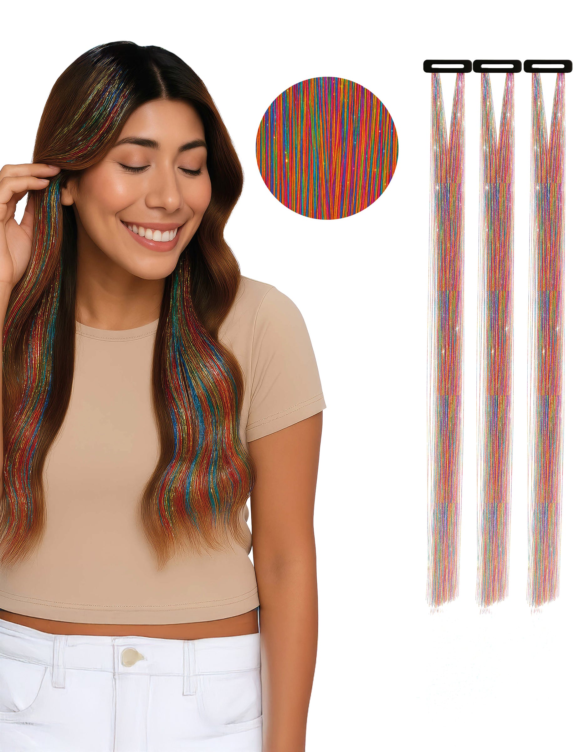 Ove višebojne ekstenzije dat će originalan i svjetlucav dodir vašim frizurama, idealne za privlačenje pažnje i isticanje vašeg stila.