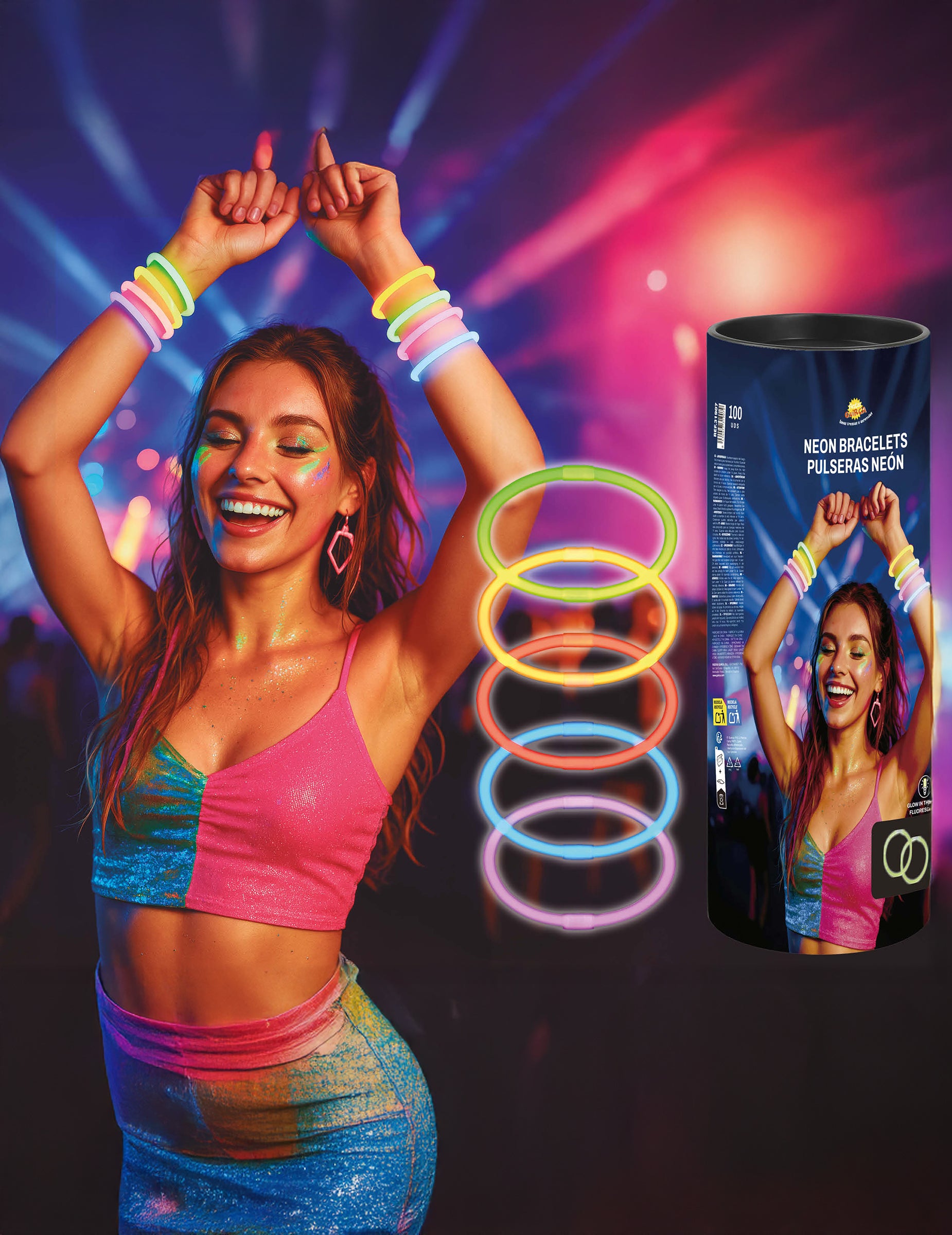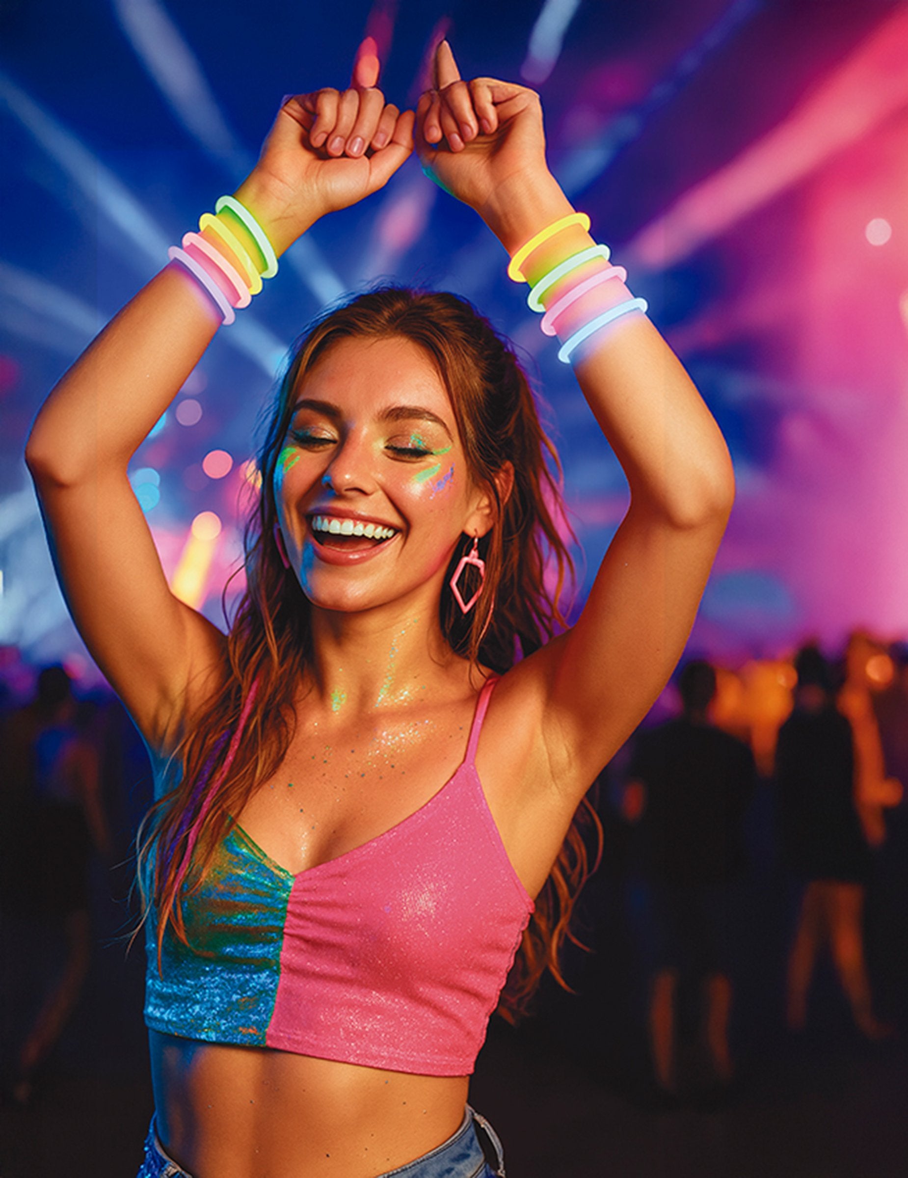 Ovih 50 raznobojnih narukvica koje svijetle u mraku savršene su za osvjetljavanje vaših zabava, koncerata, festivala ili druženja s prijateljima. Lako se aktiviraju, samo ih lagano savijte kako biste oslobodili njihov svjetleći sjaj. Svaka narukvica pretvara se u blistavi neonski dodatak, idealan za stvaranje zabavne i šarene atmosfere. Zahvaljujući svojoj fleksibilnosti, prikladne su i za odrasle i za djecu.