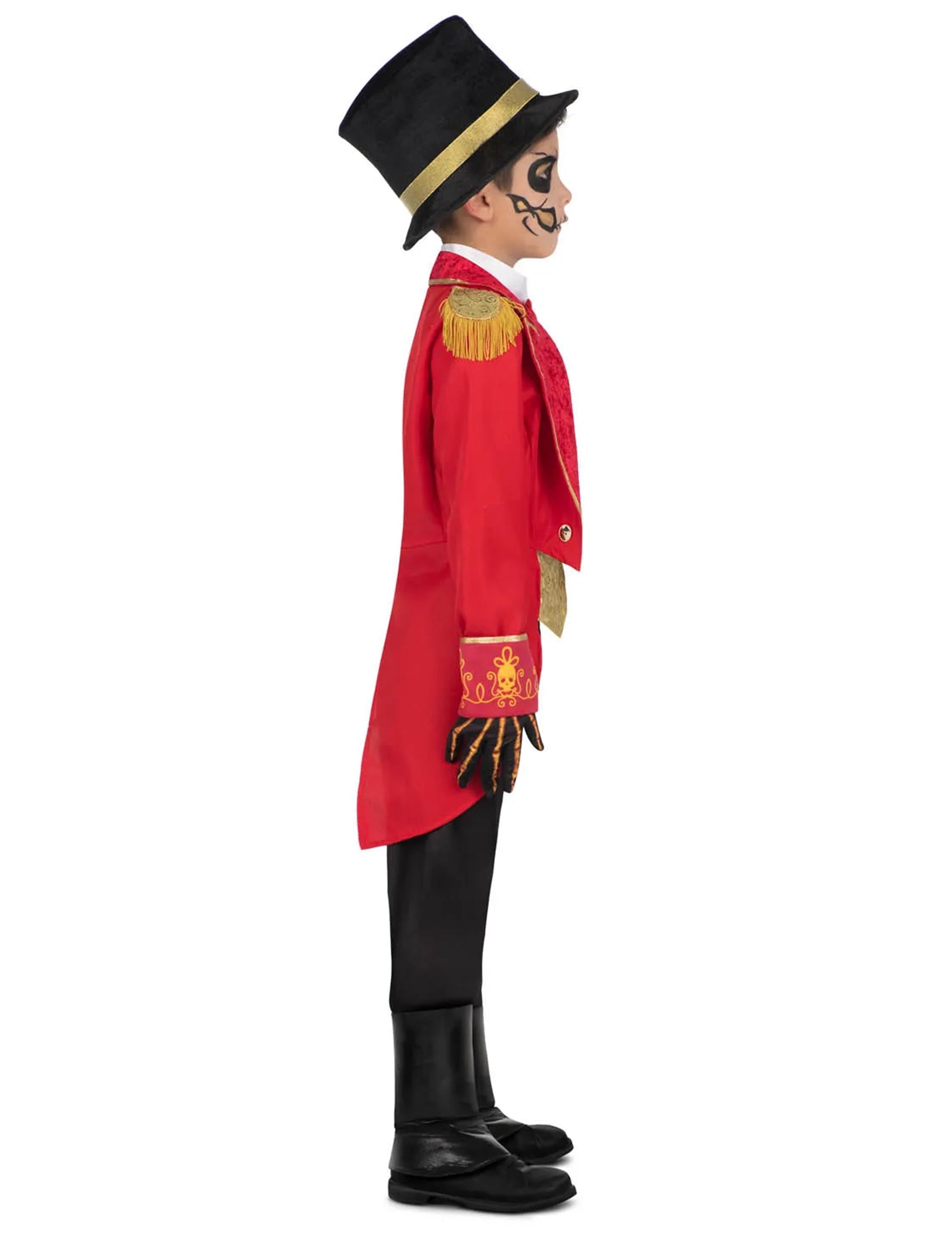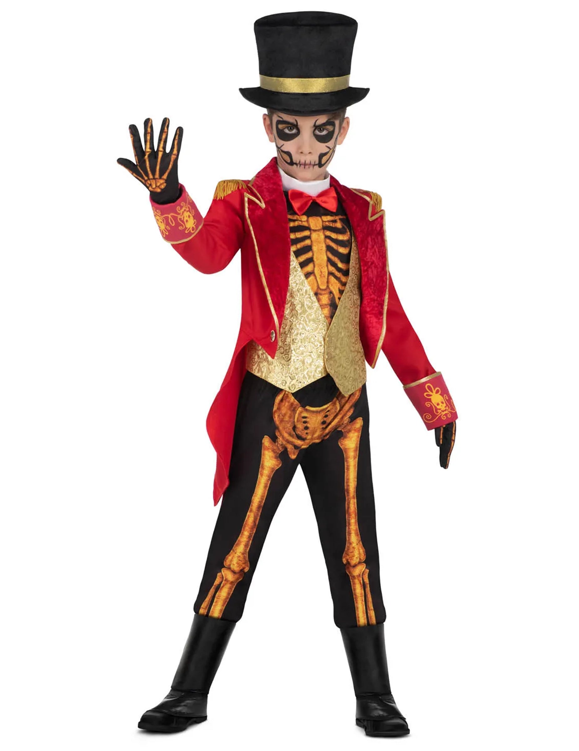 Ovaj kostim Gospodina Loyala kostura za dječake savršena je kombinacija cirkuske elegancije i mračne atmosfere, idealan za pretvaranje djece u voditelje ceremonije iz kraljevstva mrtvih. Savršen za privlačenje pažnje tijekom povorki ili skupljanja slatkiša za Noć vještica.