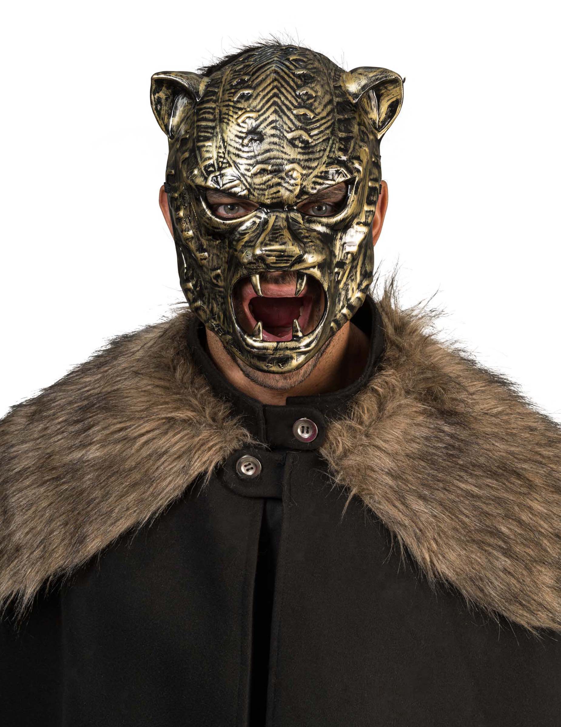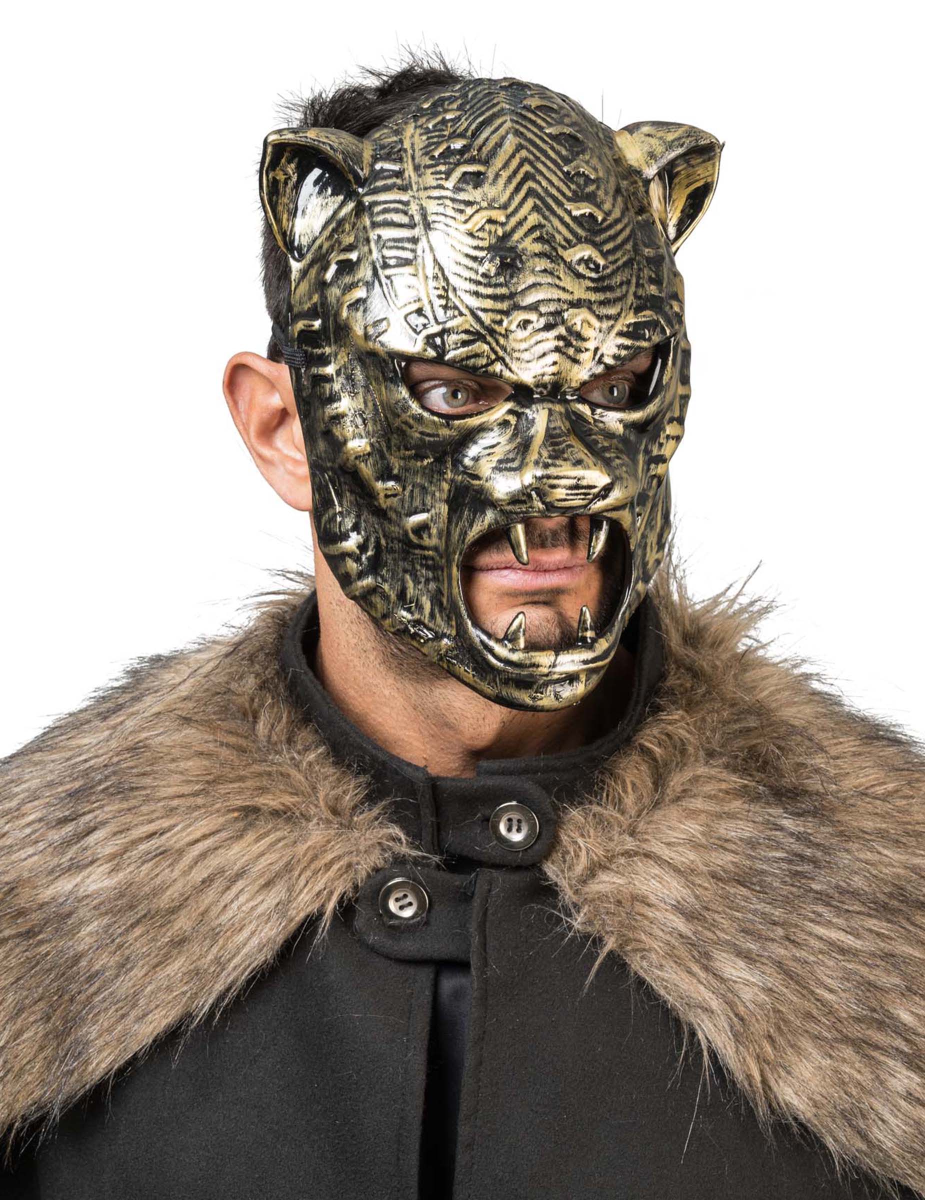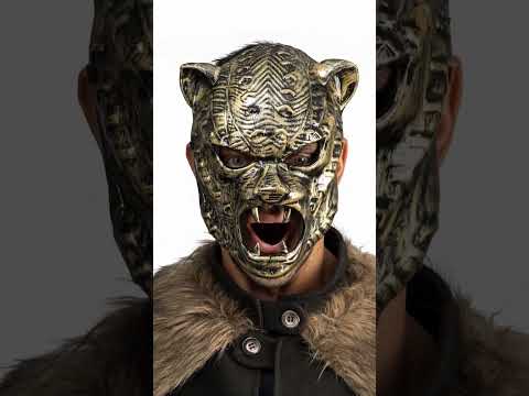Sa svojim izloženim zubima i urezanim motivima, ova maska priziva istovremeno životinjsku snagu i mistični svijet. Lagan i udoban, lako se prilagođava za dugotrajno nošenje.