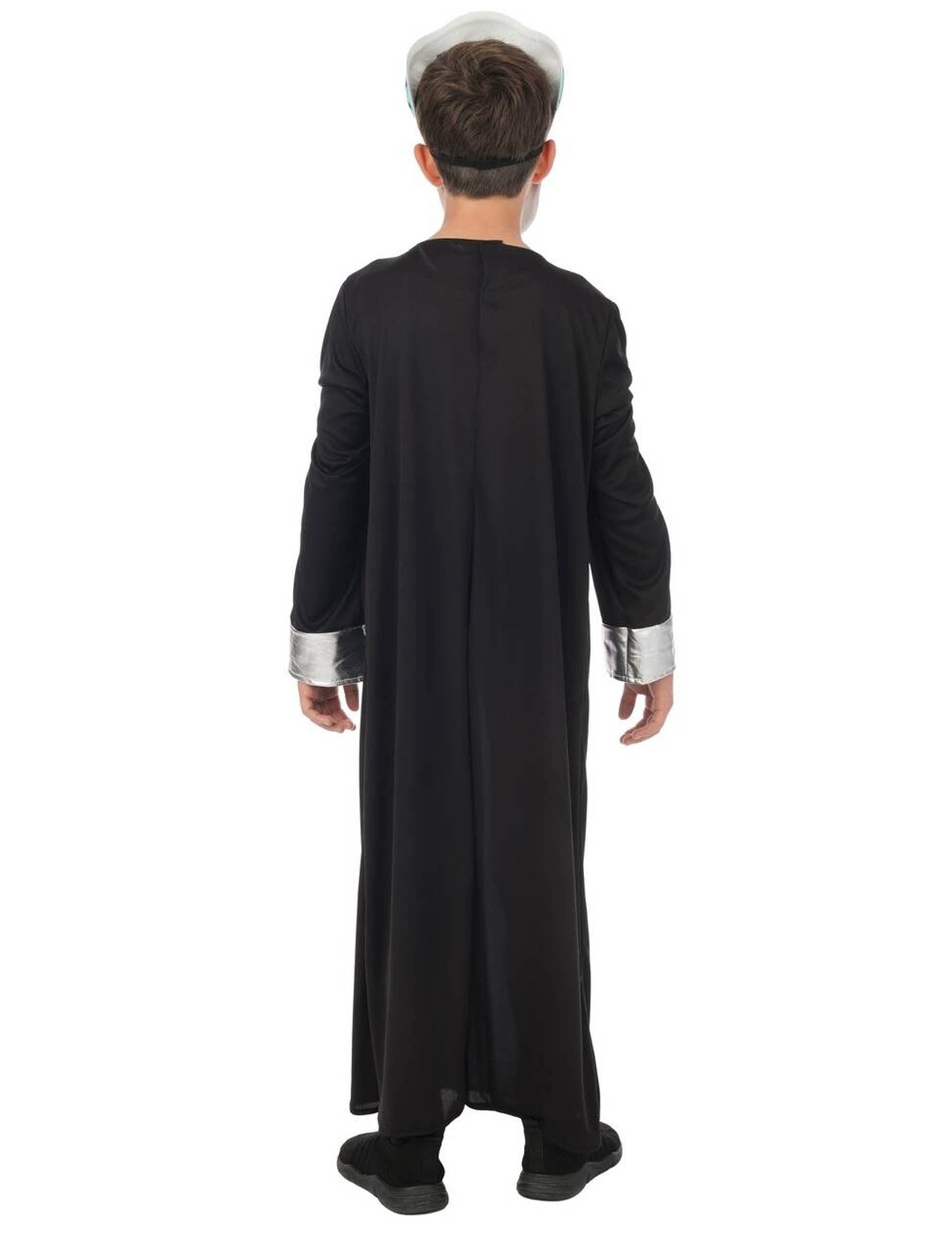S ovim plavim kostimom izvanzemaljskog zapovjednika, vaše dijete je spremno osvojiti galaksiju! Odjevna kombinacija uključuje crno-plavu tuniku sa širokim, futurističkim ovratnikom i upečatljivu izvanzemaljsku polumasku. Cjelina daje tajanstven, nestvaran izgled. Idealan za karneval, Noć vještica ili znanstvenofantastični događaj, ovaj kostim će djecu i odrasle prenijeti u daleki i fantastični svemir.