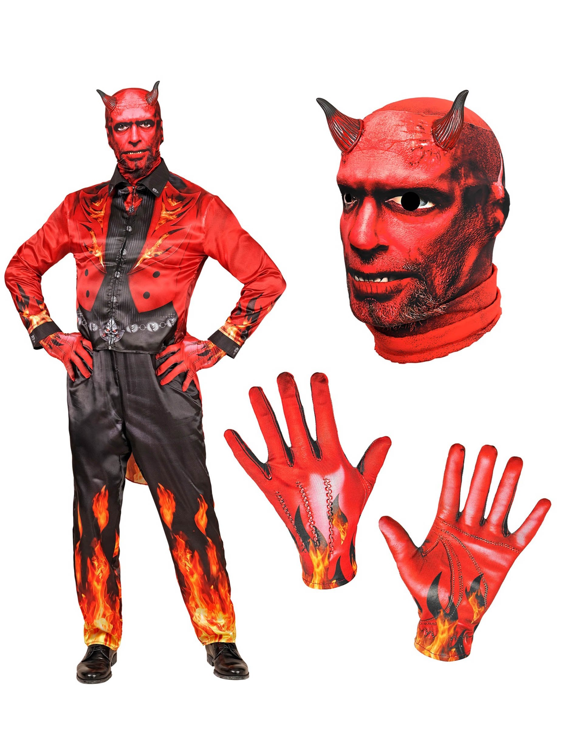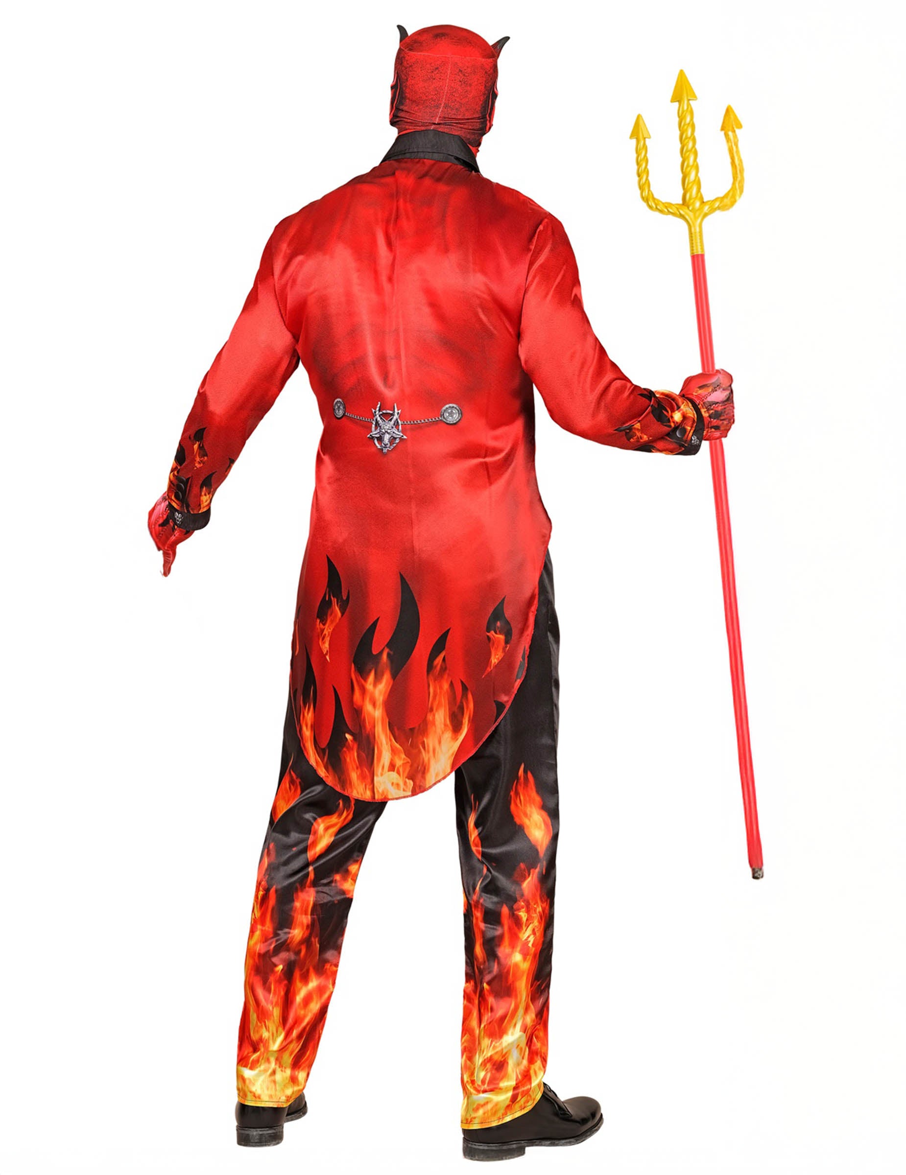 Zaronite u dubine pakla s ovim potpunim kostimom vatrenog đavla za odrasle. Sastoji se od jakne, hlača, rukavica i maske, sve izrađeno od tkanine s otiskom, te pruža spektakularan i vatren izgled. Uzorci užarenih plamenova na donjem dijelu hlača i rukavima daju zastrašujuću i upečatljivu dimenziju vašem izgledu.