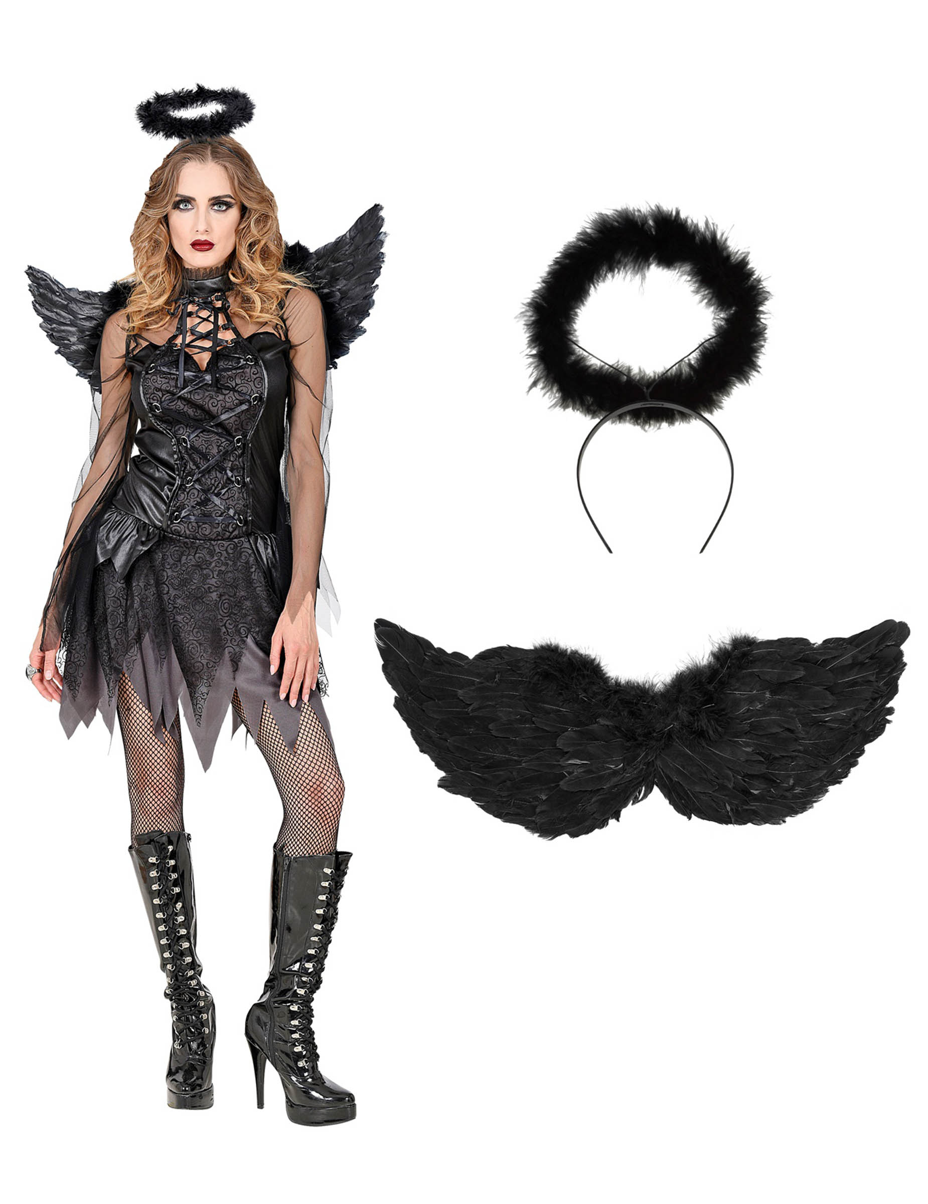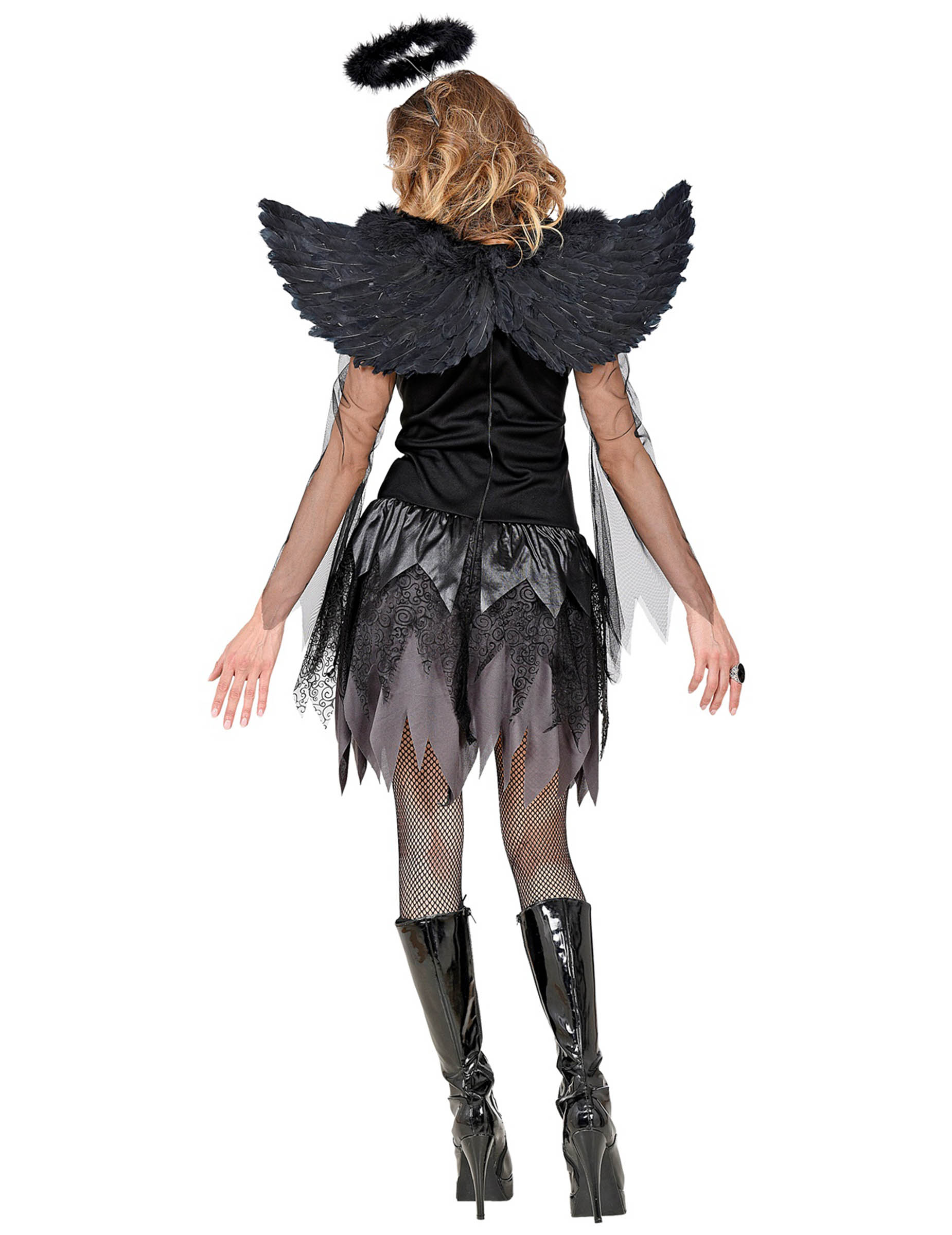 Uronite u svijet elegantne tame s ovim kostimom crnog anđela za žene. Set uključuje raskošnu crnu haljinu, tamna krila i odgovarajuću aureolu, za efekt koji je istovremeno misteriozan i zavodljiv. Detalji od tila i čipke daju profinjenu notu, idealnu za one koje žele utjeloviti šarmantnog palog anđela.