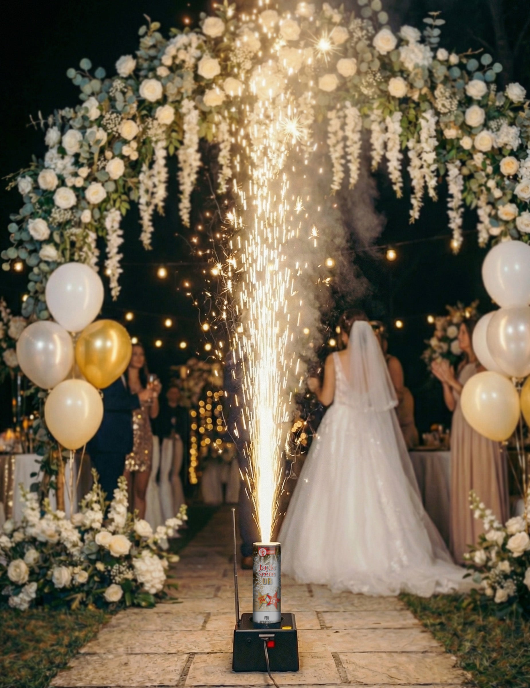 Jednom pokrenut, mlaz podiže zlatni oblak do 2 metra visine, idealno za vjenčanja, novogodišnje proslave, rođendane, predstave ili bilo koju vanjsku svečanost.