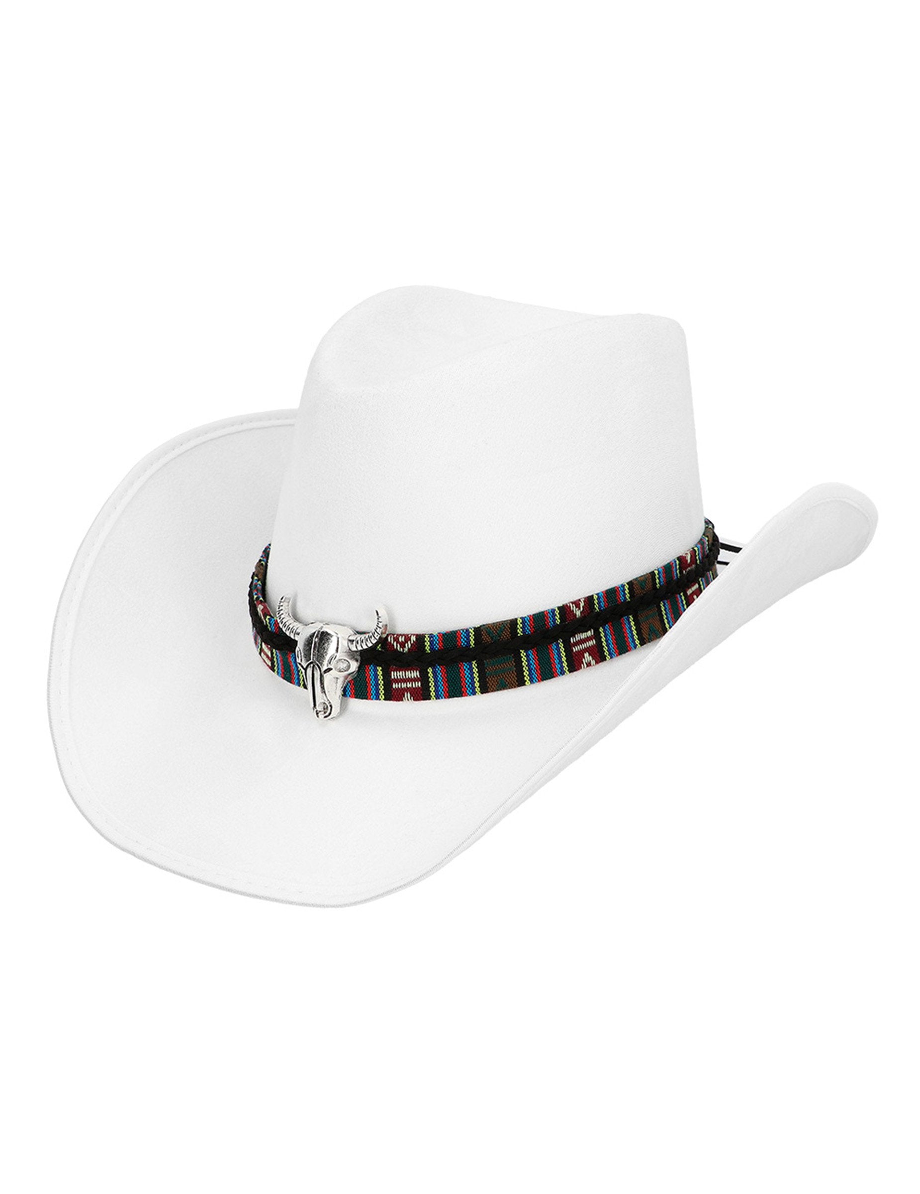 Bijeli kaubojski šešir za odrasle s glavom bizona