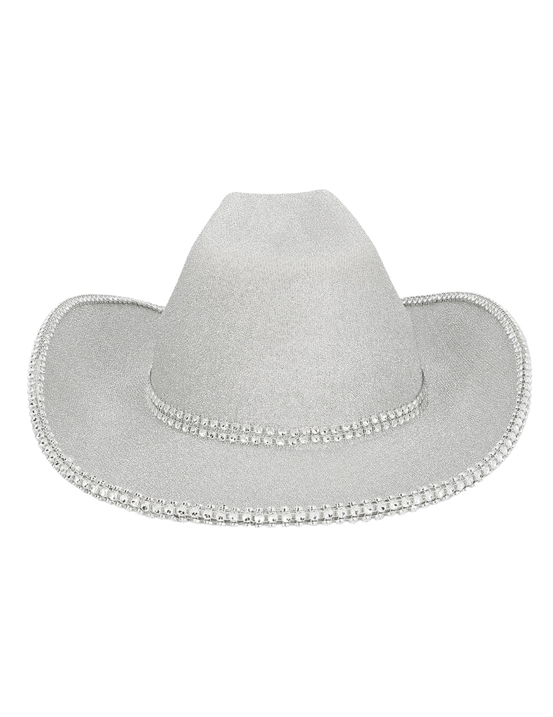 Ovaj srebrni kaubojski šešir sa šljokicama dodat će dašak glamura i zabave vašim kostimima. Ukrašen svjetlucavim cirkonima oko oboda, kombinira zapadnjački stil sa svečanim i blistavim izgledom. Idealan za kostimiranu zabavu, karneval ili tematski događaj, ovaj će vas šešir učiniti blistavim.