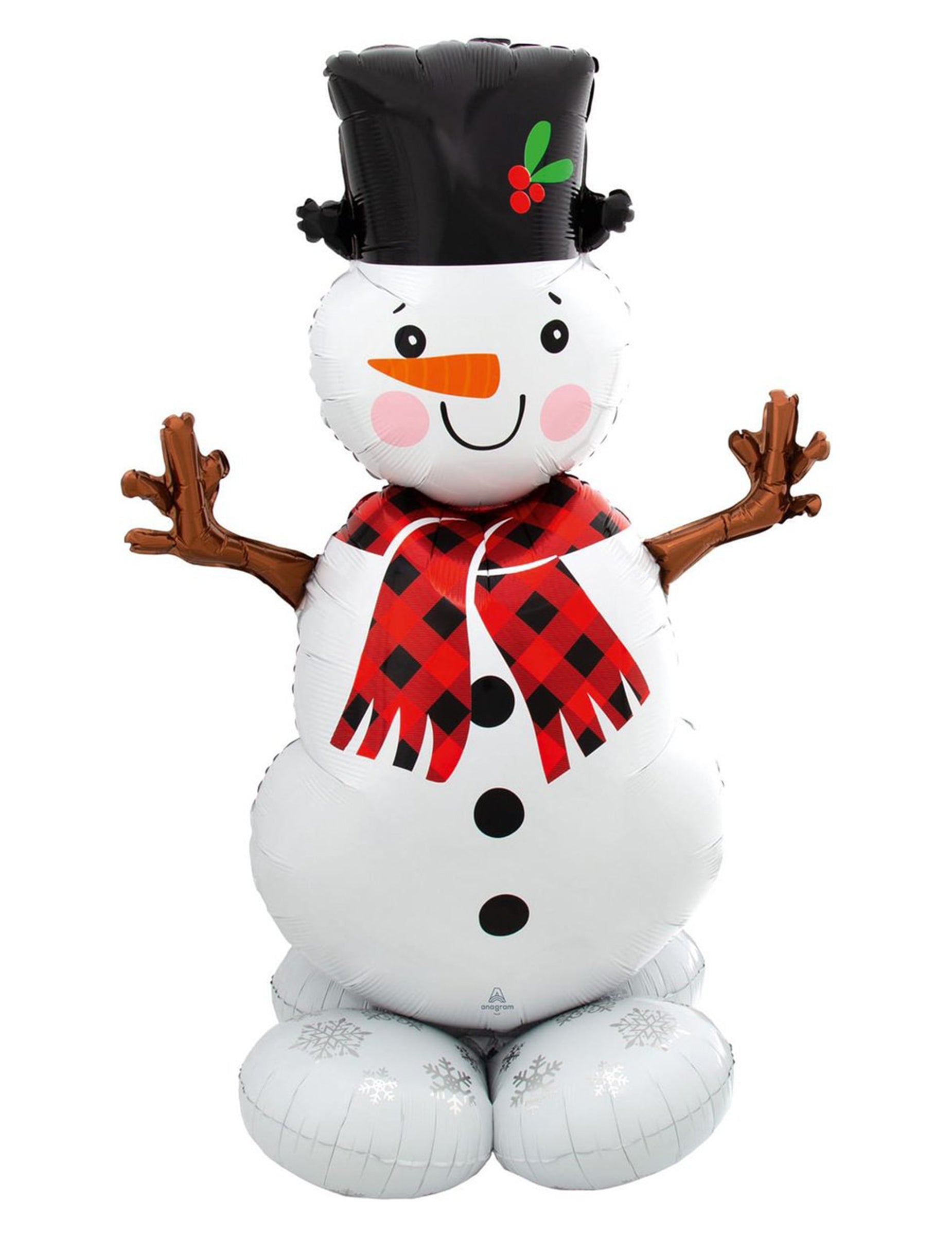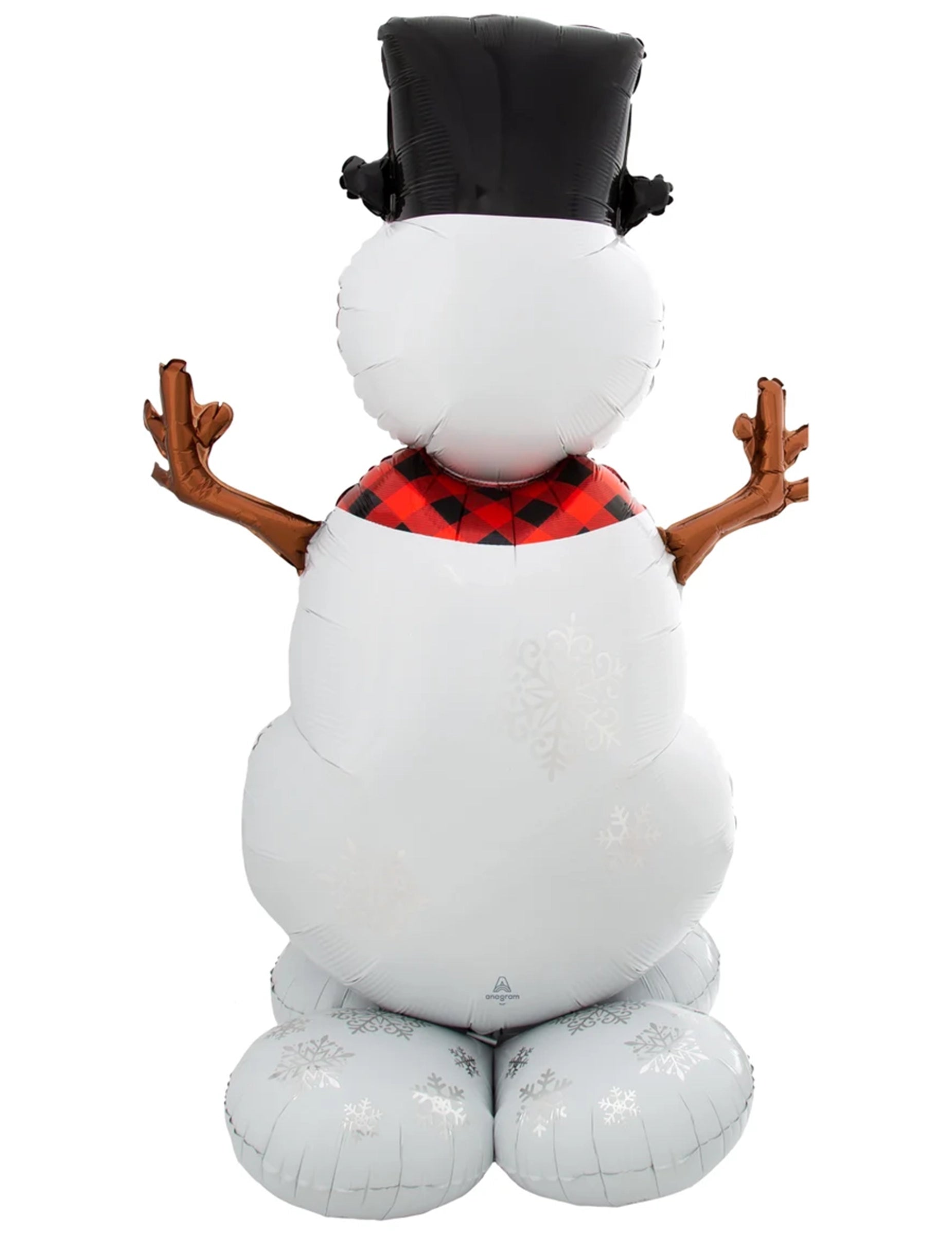 AirLoonz Snjegović 88 x 139 cm savršen je za stvaranje vesele i zimske dekoracije za proslave. Sa svojim širokim osmijehom, sjajnim crnim šeširom, zlatnim granama umjesto ruku i velikim crvenim kariranim šalom, donosi svu čaroliju blagdanske sezone.