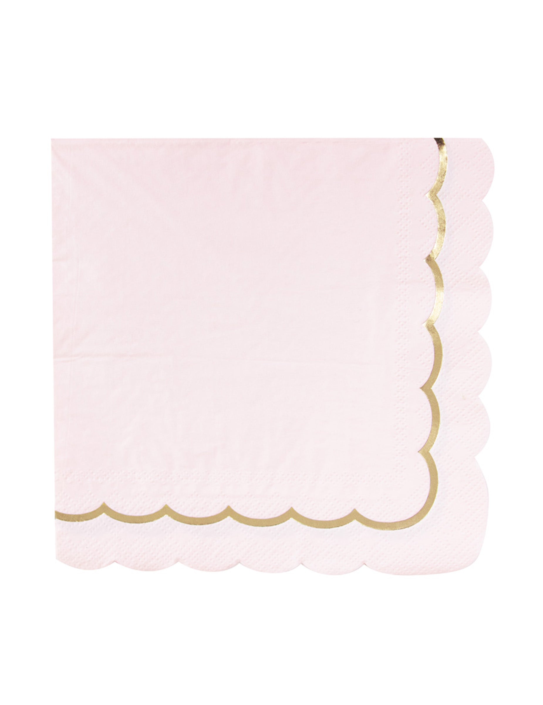 Ovih 16 pastelno ružičastih i zlatnih valovitih salveta 33 x 33 cm nudi savršenu kombinaciju nježnosti i sjaja. Njihov zlatni obrub i zaobljeni rubovi donose profinjen dodir vašem stolu.
