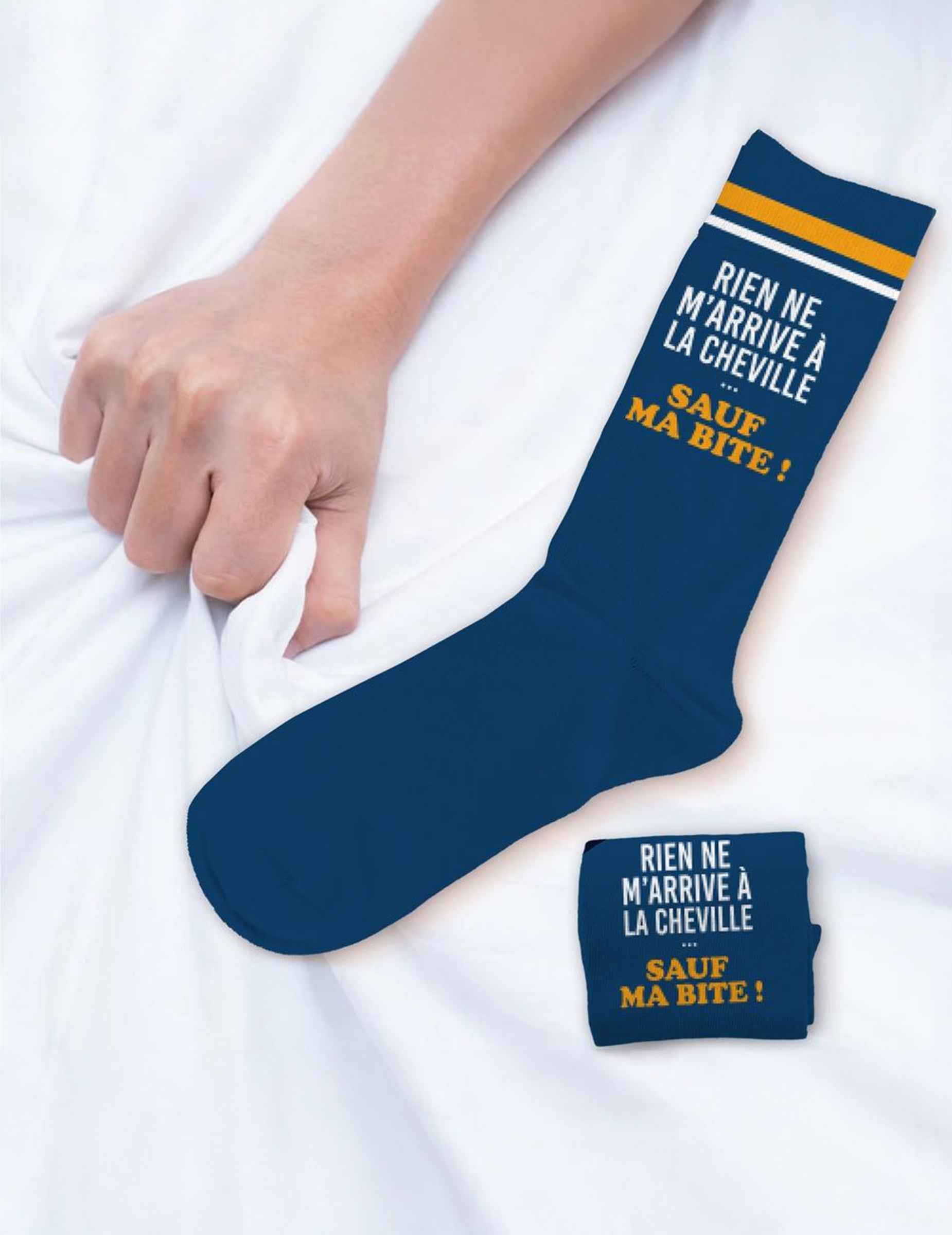Izmamite osmijeh svojim voljenima ovim šaljivim čarapama u veličinama 39-45! U tamnoplavoj boji imaju slogan "Ništa mi ne može dopasti... osim mog penisa!", smiješan i neobičan dizajn savršen za šaljivi poklon. Njihove žuto-bijele pruge na vrhu dodaju sportski i originalan dodir za jedinstven izgled. Zabavan dodatak koji možete pokloniti prijatelju, kolegi ili voljenoj osobi za rođendan, smiješan događaj ili jednostavno za dodavanje daška zabave njihovoj odjevnoj kombinaciji.