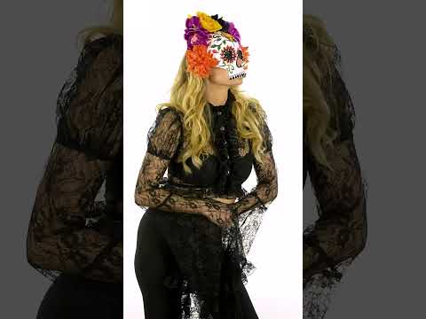 Ova maska Dia de los Muertos s cvijećem i leptirima za odrasle idealni je dodatak za utjelovljenje duha ove poznate meksičke proslave. Maska od fino ukrašenog plastika prikazuje šarene i detaljne motive, podsjećajući na slavne tradicionalne calaveras.