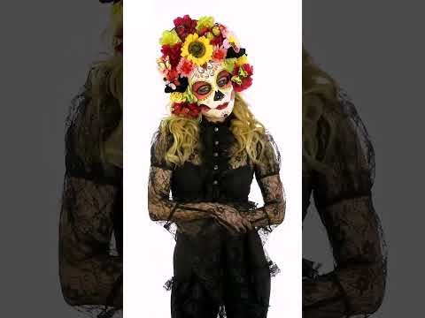 Ova polumaska lubanja s raznobojnim cvijećem za odrasle savršen je dodatak za unošenje živopisnog dodira u vašu Dia de los Muertos kombinaciju. Uzorak lubanje bogato ukrašen cvjetnim i geometrijskim motivima priziva svečani duh Día de los Muertos.