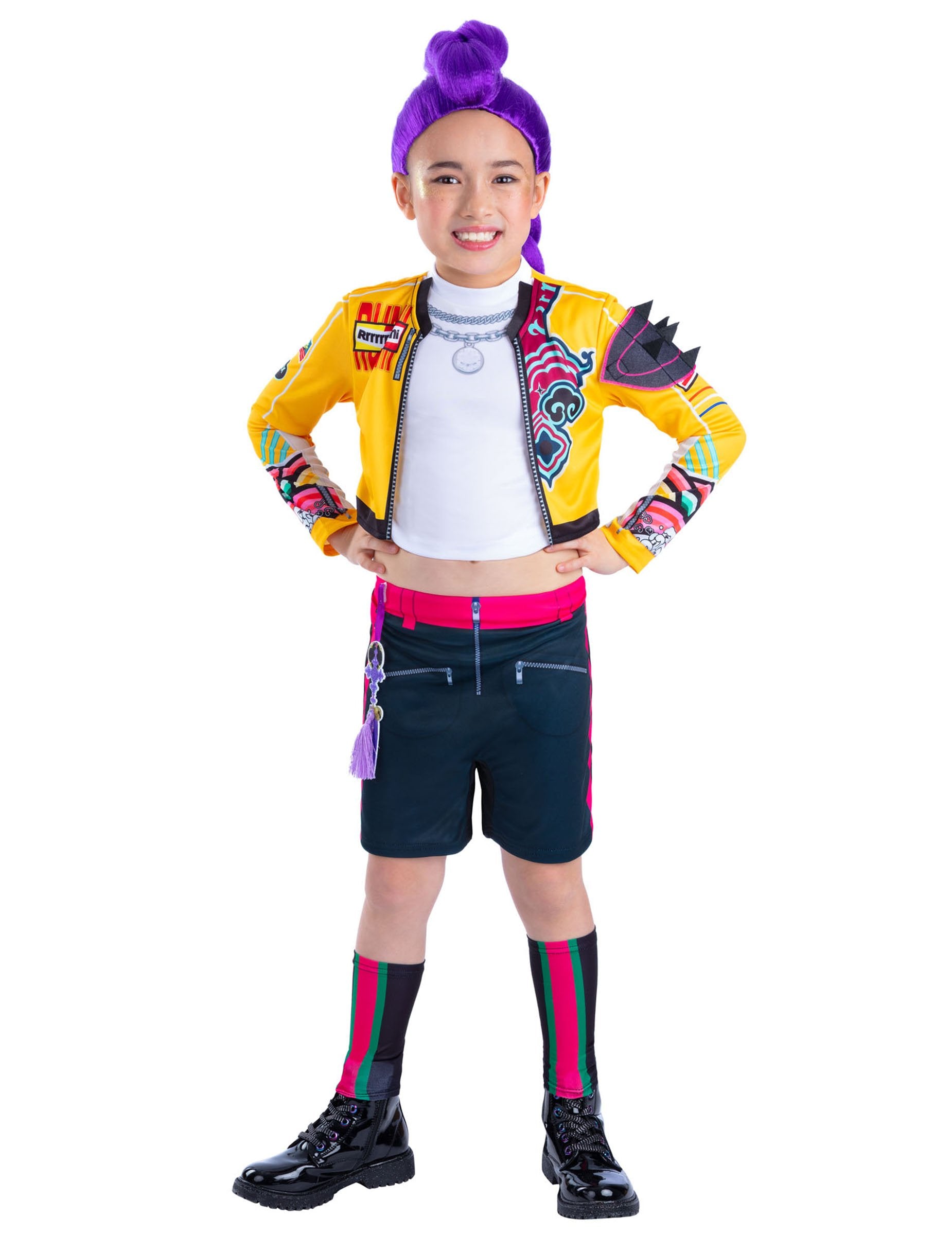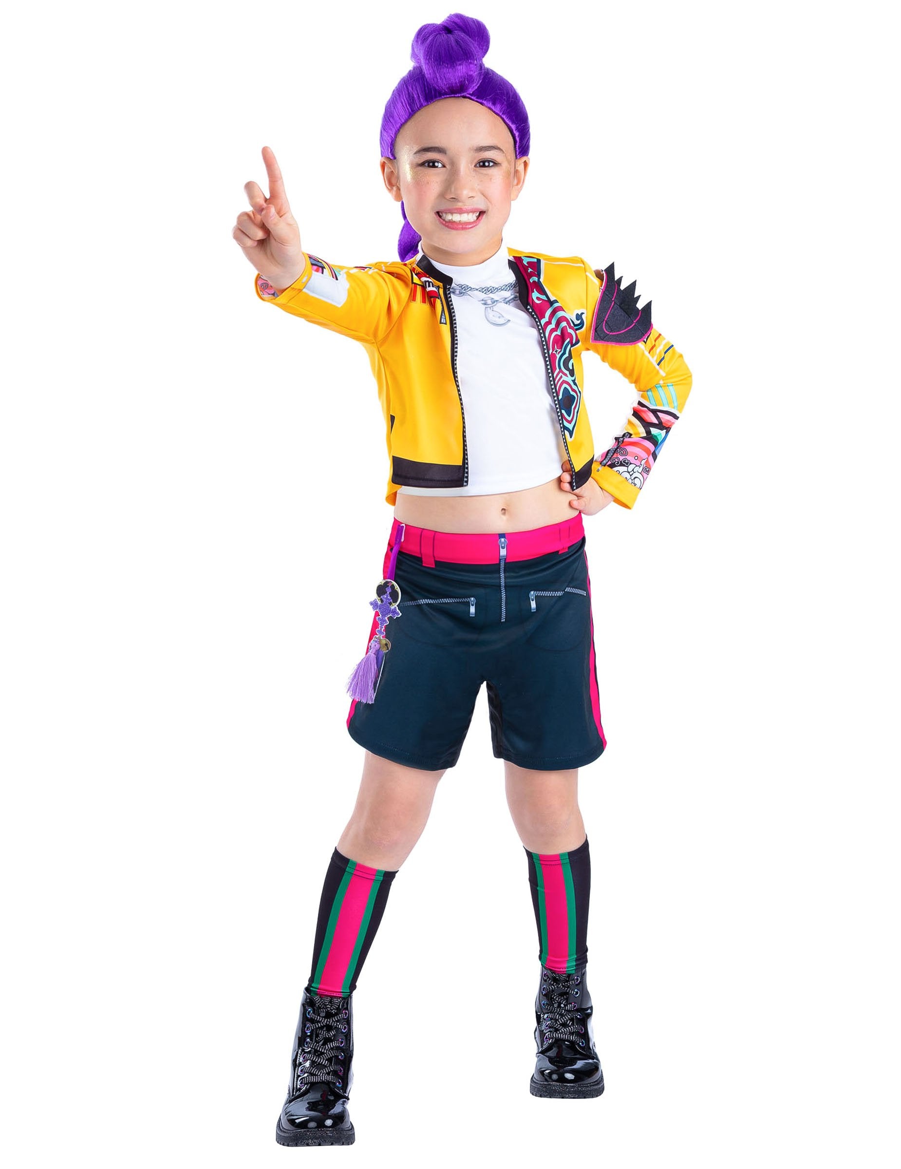 Ovaj kostim Rumi Kpop Demon Hunter™ za djevojčice uključuje ultra-stiliziranu žutu jaknu, kontrastne crne kratke hlače i odgovarajuće gamaše za savršeno dočaravanje legendarnog izgleda junakinje.