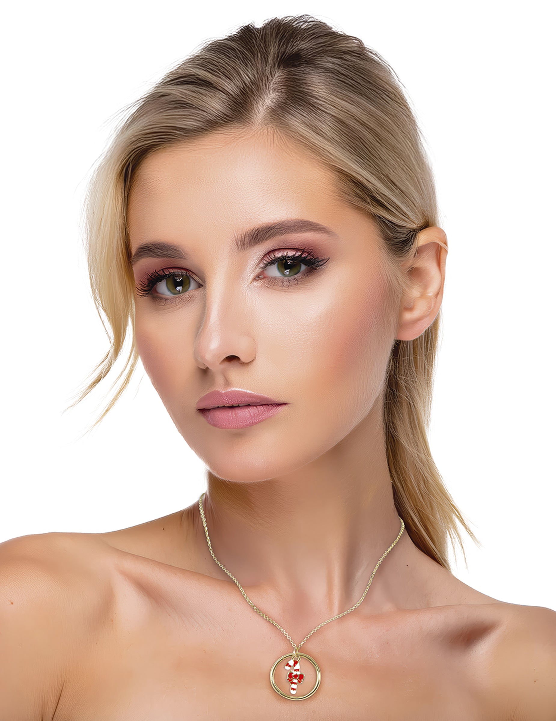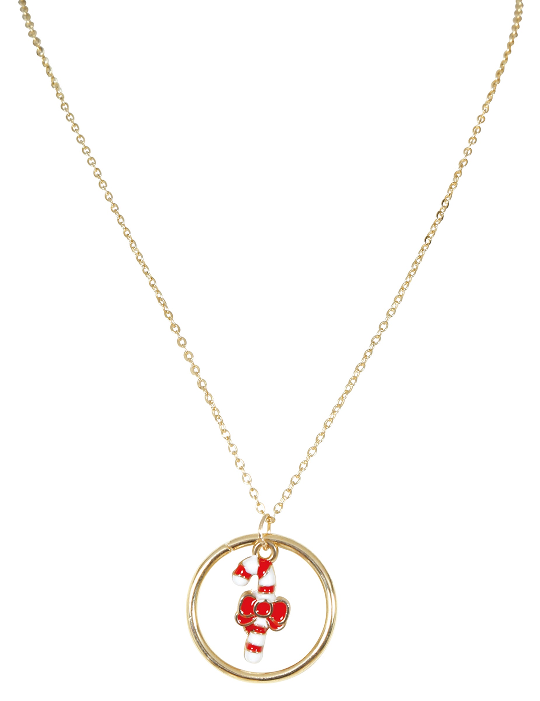 Ova božićna ogrlica u obliku štapića od slatkiša dodaje elegantan i svečan dodir vašoj odjevnoj kombinaciji. Njezin okrugli zlatni privjesak prikazuje crveno-bijeli štapić od slatkiša ukrašen malom zlatnom mašnom, kultnim simbolom blagdana. Nježan, sjajan lančić nadopunjuje svaki izgled, od večernje do ležerne odjeće. Profinjeni modni dodatak koji donosi upravo pravu količinu čarolije i sjaja za slavlje Božića sa stilom.