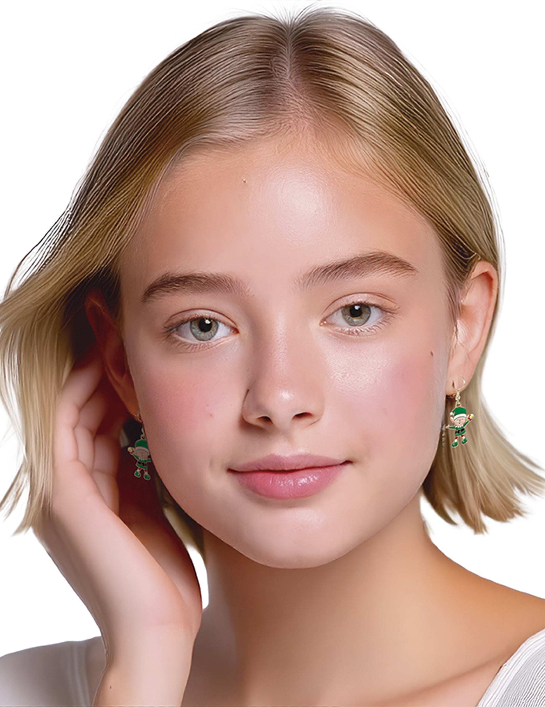 Ove metalne naušnice s božićnim vilenjacima dodaju zabavan i sjajan dodir vašim blagdanskim kombinacijama. Svaki privjesak prikazuje veselog malog vilenjaka odjevenog u zelenu i crvenu, prepoznatljive boje ovog razdoblja. Njihova lagana zlatna struktura pruža lijepu dinamiku pri svakom koraku, privlačeći svjetlost i poglede. Idealne su za božićne obroke, večernje zabave ili čak svakodnevne outfite tijekom blagdana.