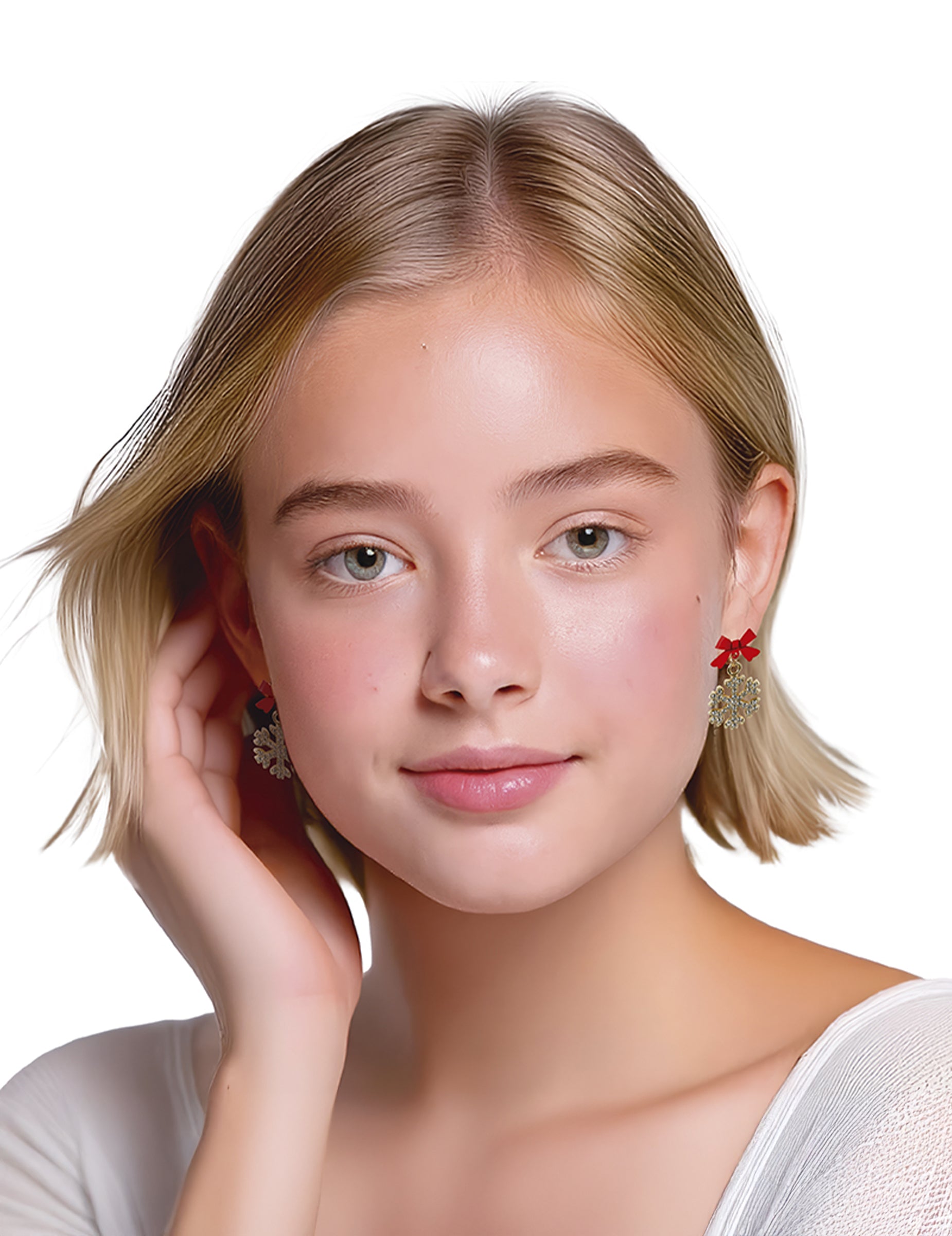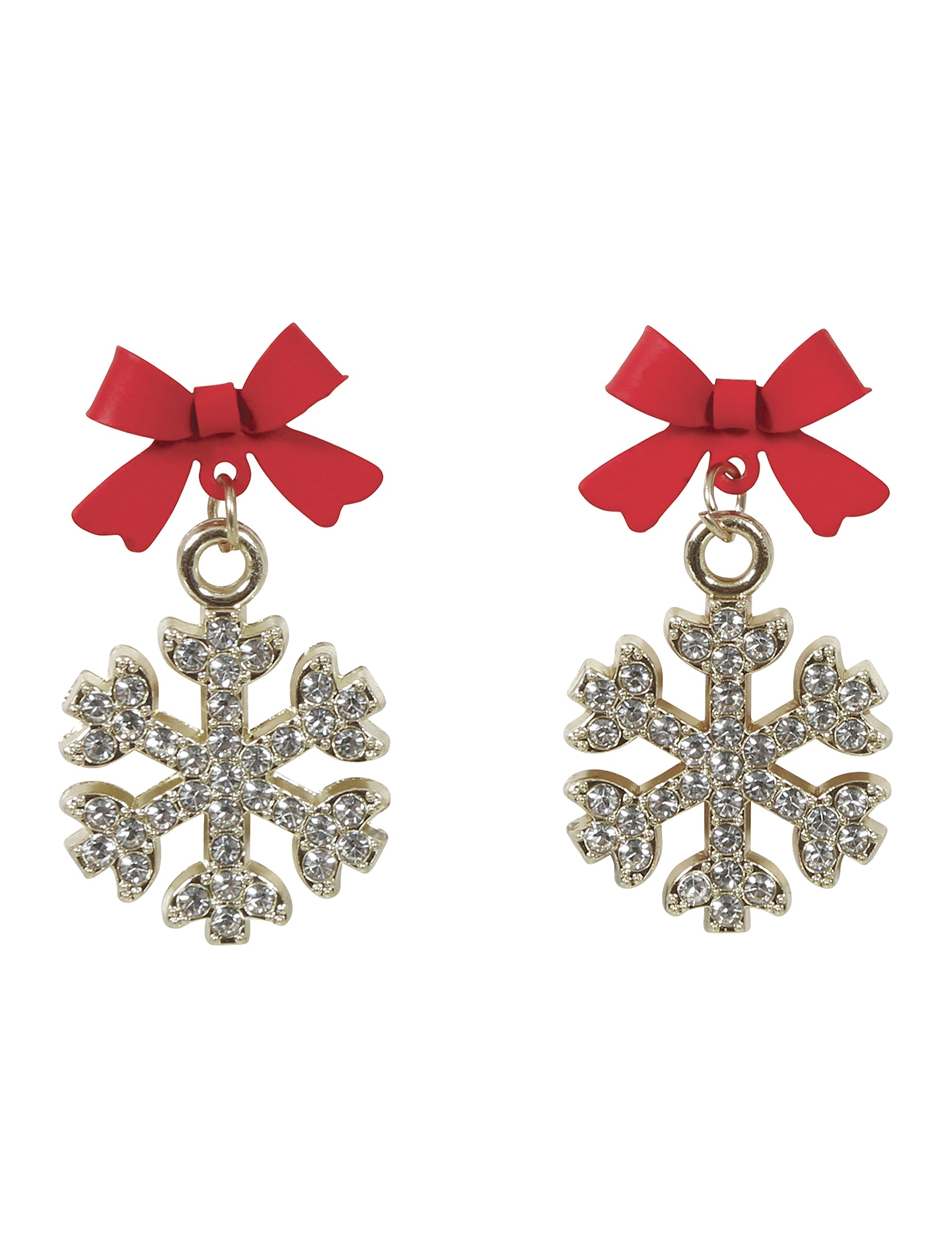 Ove svjetlucave metalne naušnice u obliku pahuljice dodaju elegantan i blistav dodir vašim svečanim odjevnim kombinacijama. Svaka zlatna pahuljica ukrašena je crvenom mašnom, koja evocira božićnu čaroliju i nježno obasjava vaše lice. Lagane i udobne, mogu se lako nositi tijekom cijelog dana ili za svečanu večer. Savršen komad nakita koji će upotpuniti vaš božićni stil profinjenošću i originalnošću.