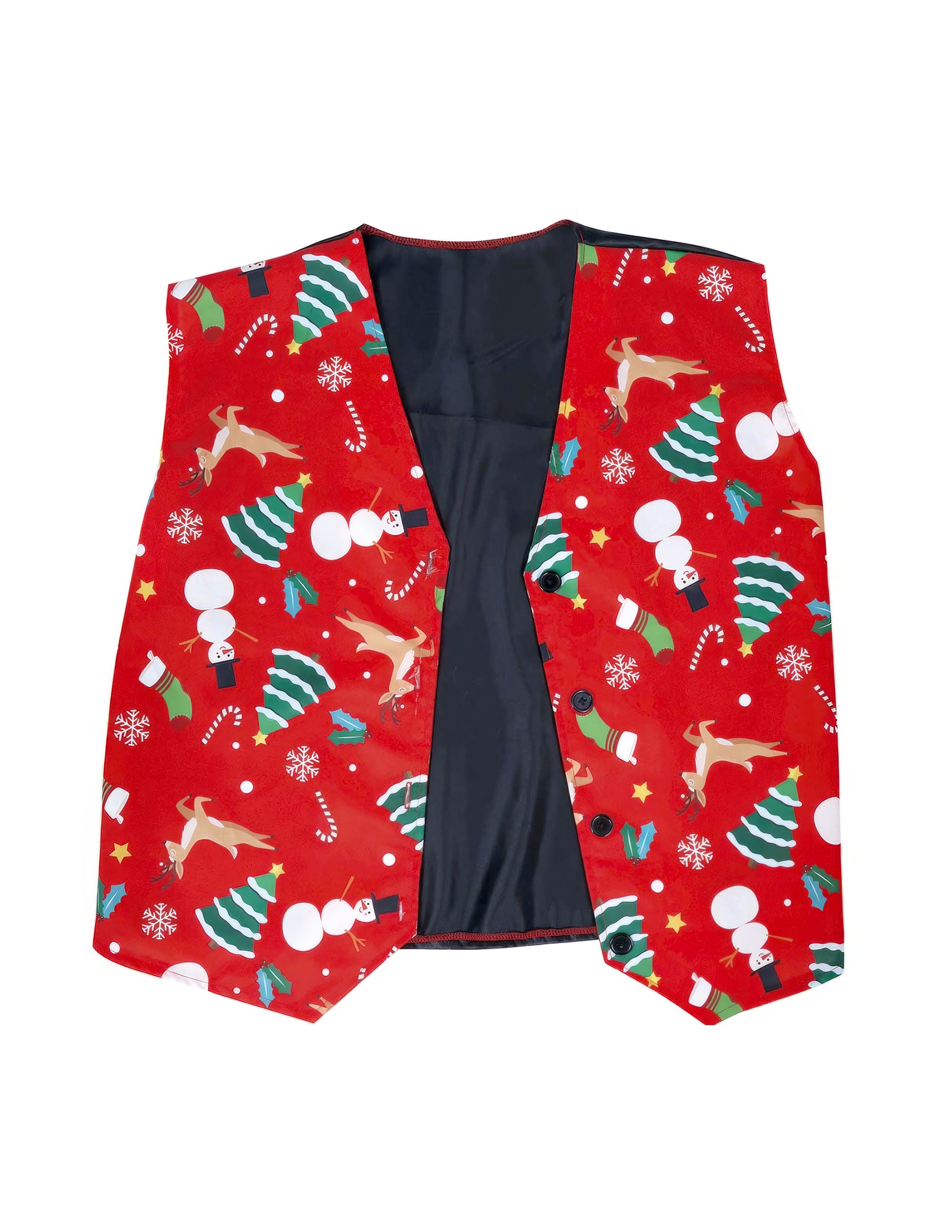 Ovaj crveni kardigan s božićnom tematikom za odrasle savršen je izbor za dodavanje daška blagdanskog štiha. Ukrašen šarenim motivima jelki, sobova, pahuljica i slatkiša, donosi otkačen dodir vašoj blagdanskoj odjevnoj kombinaciji. Njegov klasični kroj i kopčanje na gumbe omogućuju lako nošenje preko košulje za izgled koji je istovremeno šik i zabavan. Savršen za božićnu večeru, večer s prijateljima ili opuštenu atmosferu u uredu.