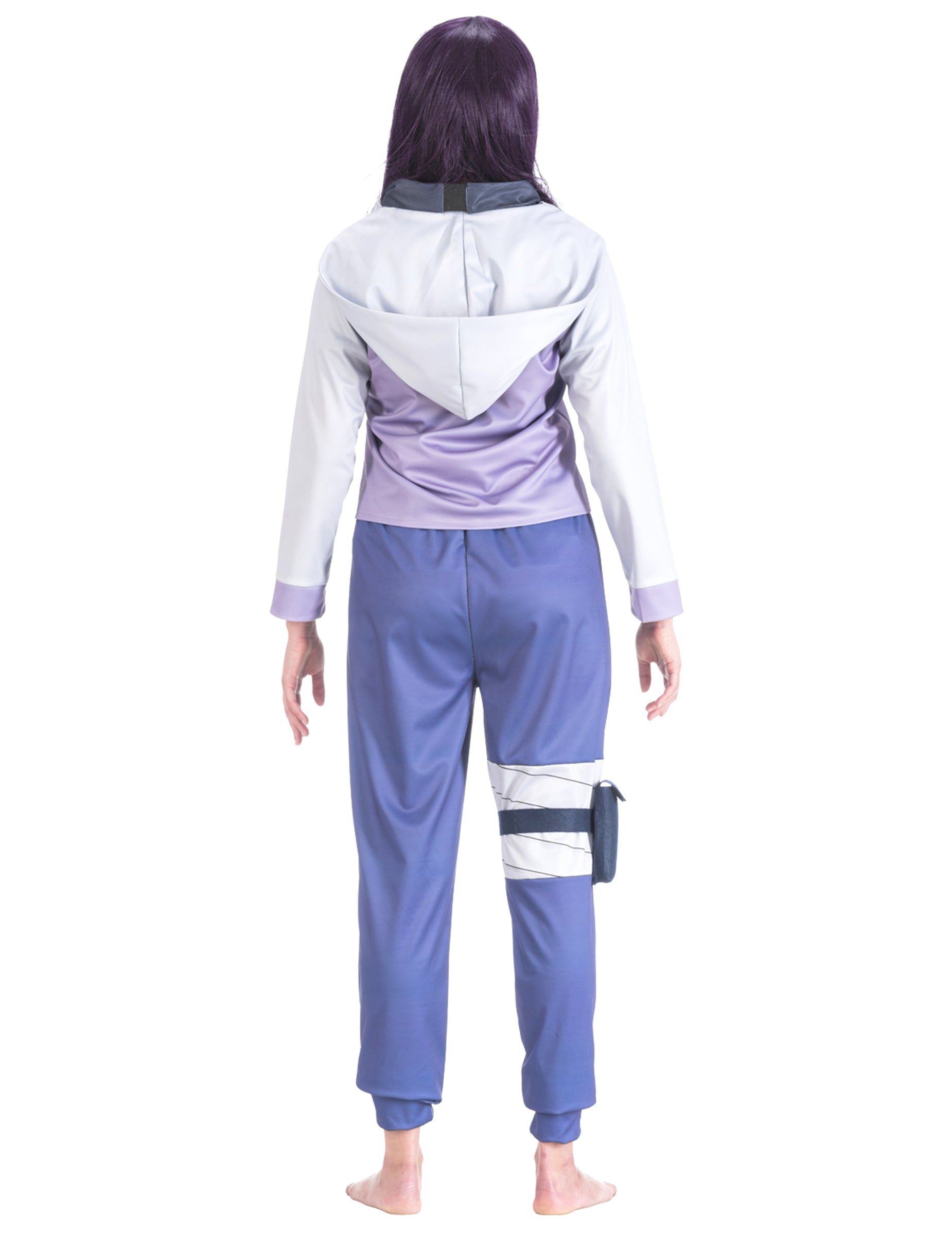 Ovaj kostim Hinate Naruto za žene uključuje ljubičastu jaknu, tamni top, plave hlače, ogrlicu i torbicu - pet dijelova koji savršeno dočaravaju izgled lika. Jakna je nježno ljubičaste boje sa svijetlim rukavima, dok tamni top stvara jednostavan kontrast. Plave hlače imaju udoban ravan kroj. Ogrlica uključuje poznati simbol sela, a torbica se nosi sa strane kako bi se naglasio Hinatin stil. Savršen kostim za tematsku zabavu, karneval ili rođendan.