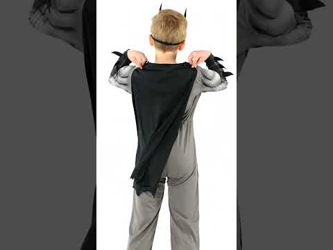 Ovaj klasični sivi Batman™ kostim za djecu uključuje kombinezon s otisnutim mišićima superjunaka, s podstavljenim torzom za još impresivniji efekt. Detalji 3D manžeta dodaju realističan dojam, dok crni odvojivi plašt daje sav sjaj pravog osvetnika. Maska je odvojena, jednostavna za stavljanje i skidanje, što omogućuje brzo preobražavanje u slavnog maskiranog zaštitnika.