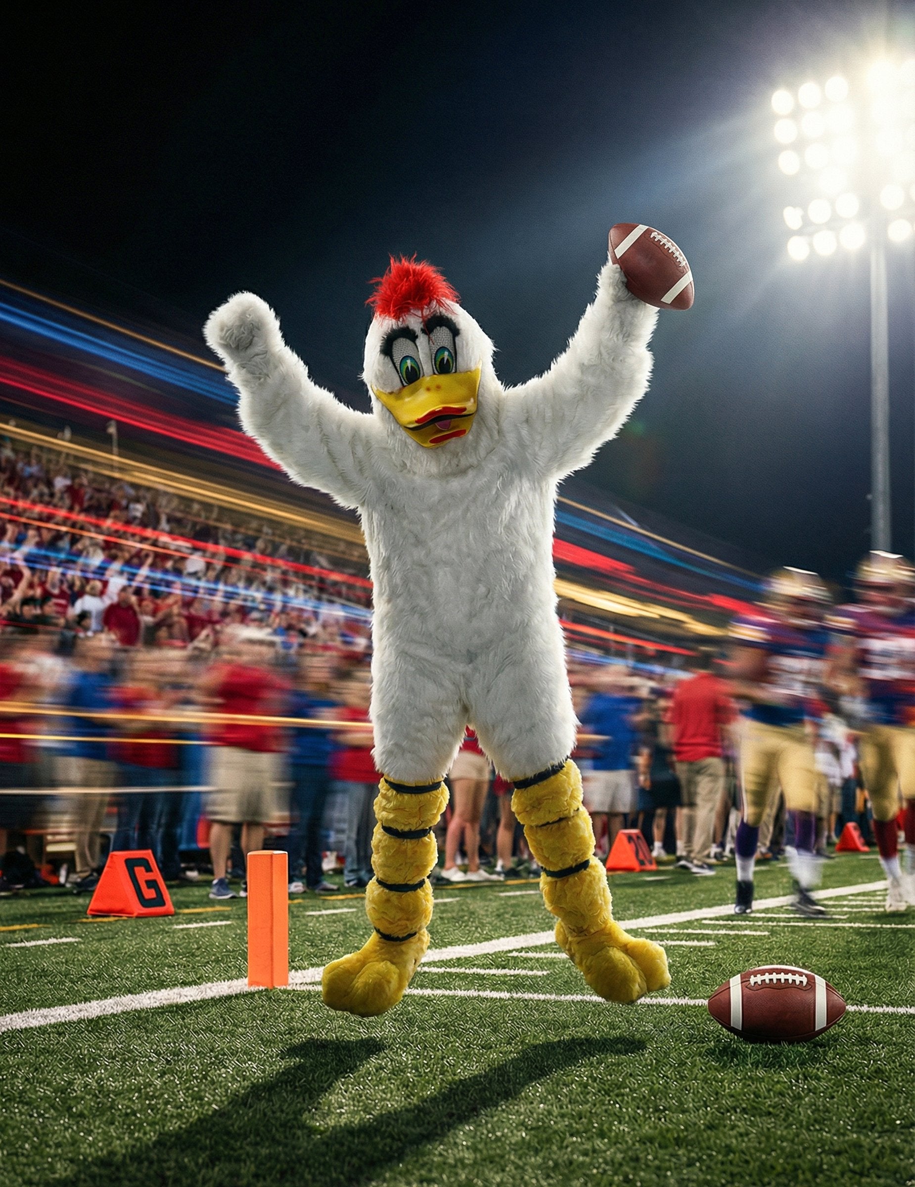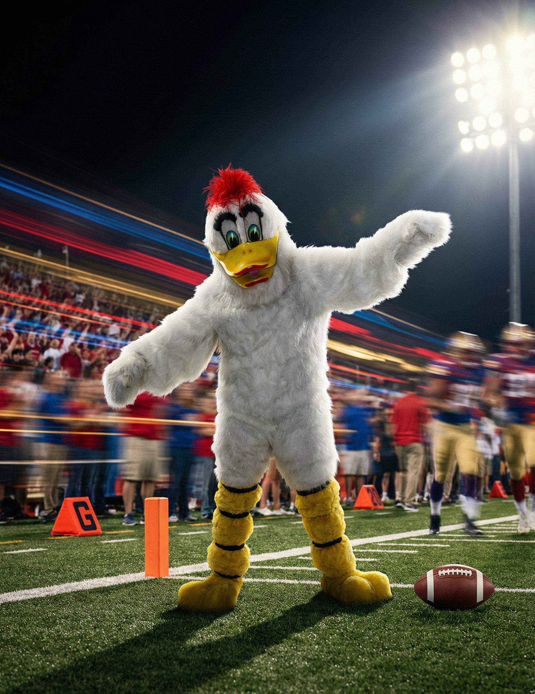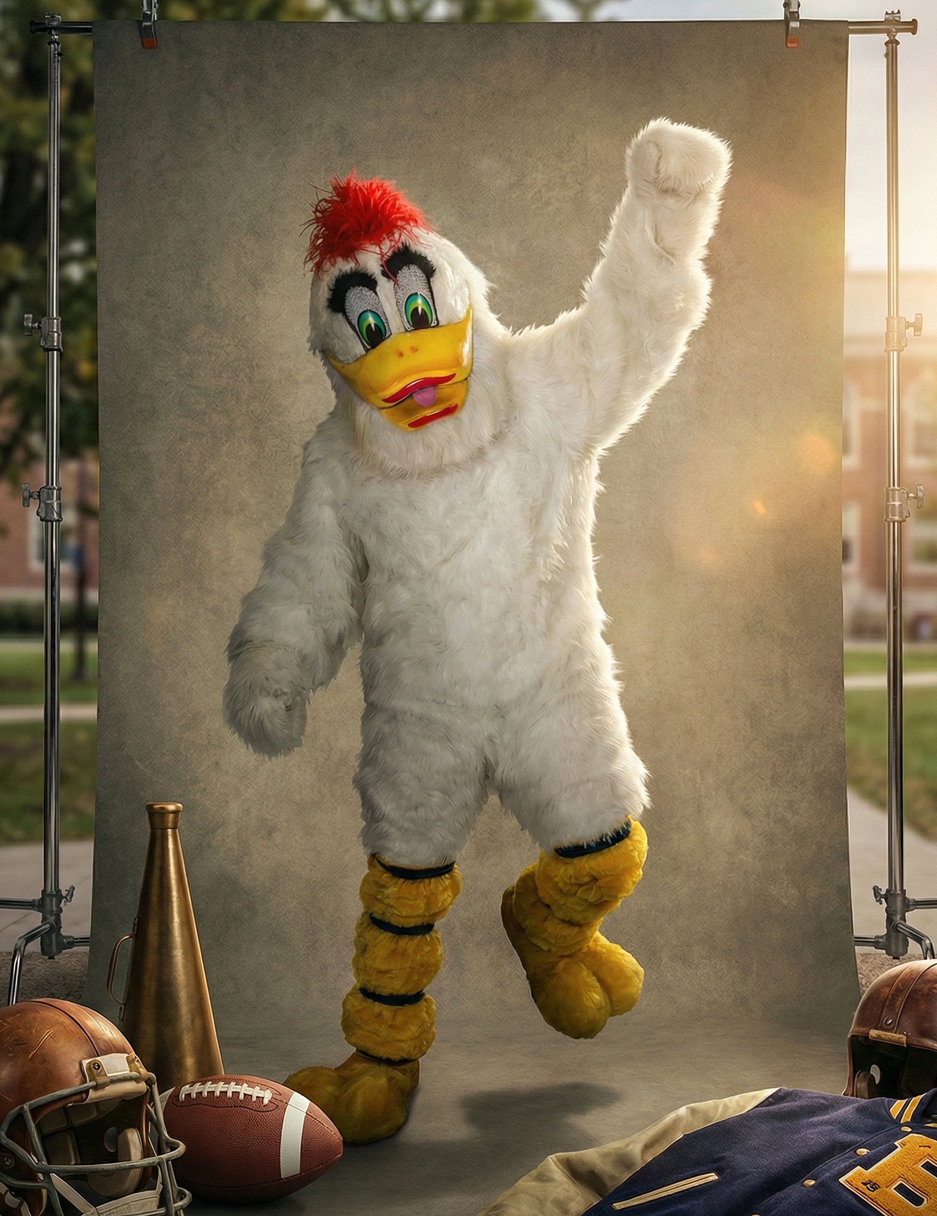 Ovaj vrhunski kostim maskote bijele patke za odrasle nudi kompletnu i elegantnu odjevnu kombinaciju za stvaranje živahne atmosfere na karnevalu ili rođendanskoj zabavi. Set uključuje kombinezon, par rukavica, masku i par navlaka za cipele, što vam omogućuje stvaranje potpuno ujednačenog lika od glave do pete. Kombinezon, prekriven bijelim umjetnim krznom, ima mekan i besprijekoran izgled. Njegov široki kroj omogućuje lako kretanje tijekom hodanja, pozdravljanja ili zabavljanja gostiju. Rukavice, koje odgovaraju kombinezonu, prirodno produžuju efekt krila za kohezivnu siluetu. Maska pruža puni izraz kostima: velike, šarene oči, istaknuti kljun i crveni čuperci na vrhu, dajući mu energičan izgled lica. Detalji lica nude živahan i odmah prepoznatljiv izgled, idealan za privlačenje pažnje i stvaranje radosne atmosfere. Navlake za cipele upotpunjuju odjevnu kombinaciju oblikom koji podsjeća na pačje noge, osiguravajući vizualni kontinuitet od glave do pete. Ovaj vrhunski kostim omogućuje vam utjelovljenje zabavnog i simpatičnog lika, savršenog za nasmijavanje ljudi, zabavu mnoštva ili sudjelovanje u fotografiranju tijekom zabave.