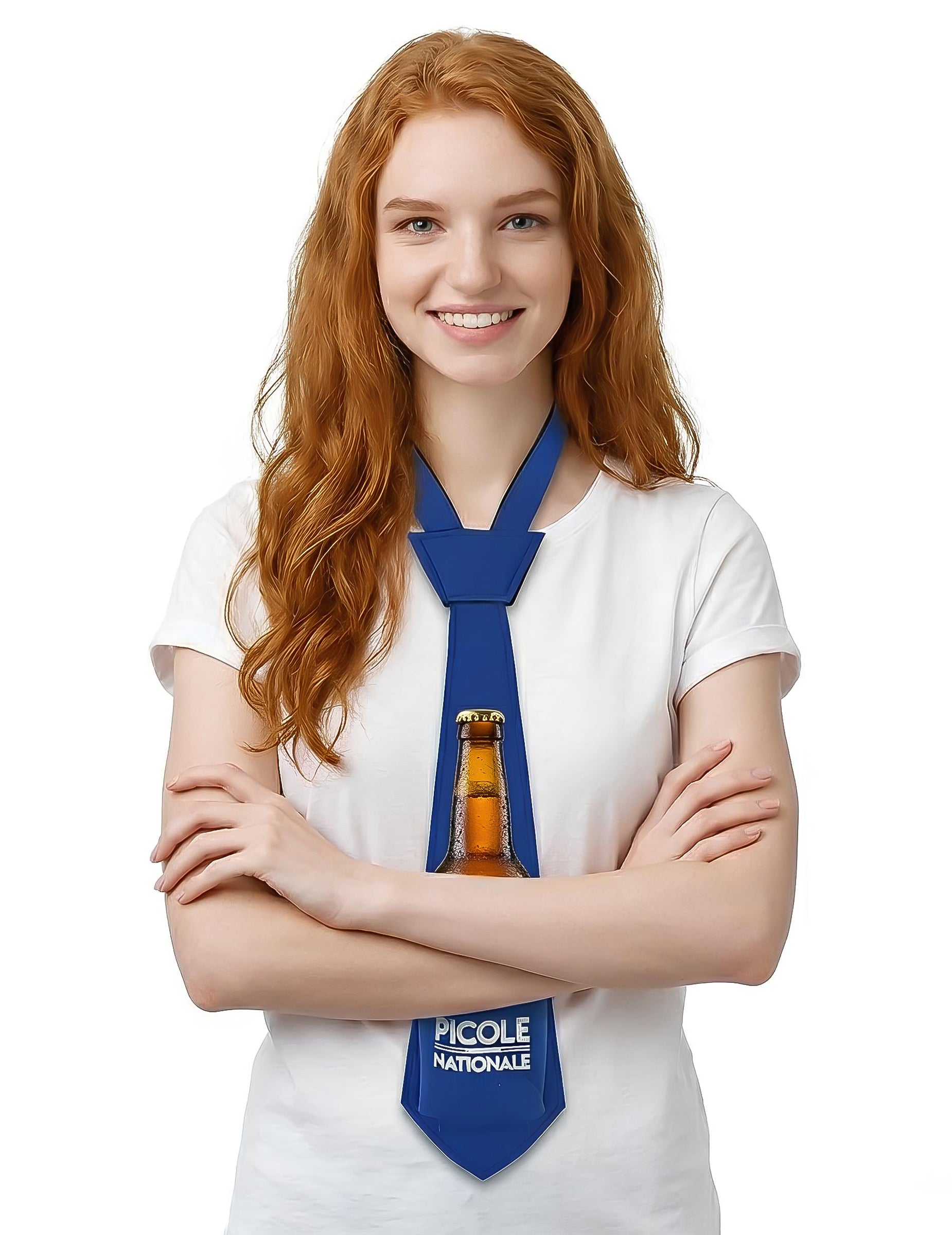 Ova kravata protiv žeđi Picole Nationale donosi humorističan dodir zahvaljujući klasičnom obliku u duhovitoj izvedbi i integriranom džepu u koji možete staviti limenku ili malu bocu. Njena plava boja i otkačeni natpis pojačavaju zabavni duh, savršena je za druženja uz aperitiv s prijateljima, roštilj ili tematske zabave. Laka i jednostavna za nošenje, postaje idealan dodatak za držanje pića pri ruci, a pritom pokazuje vedar i veseo stil.