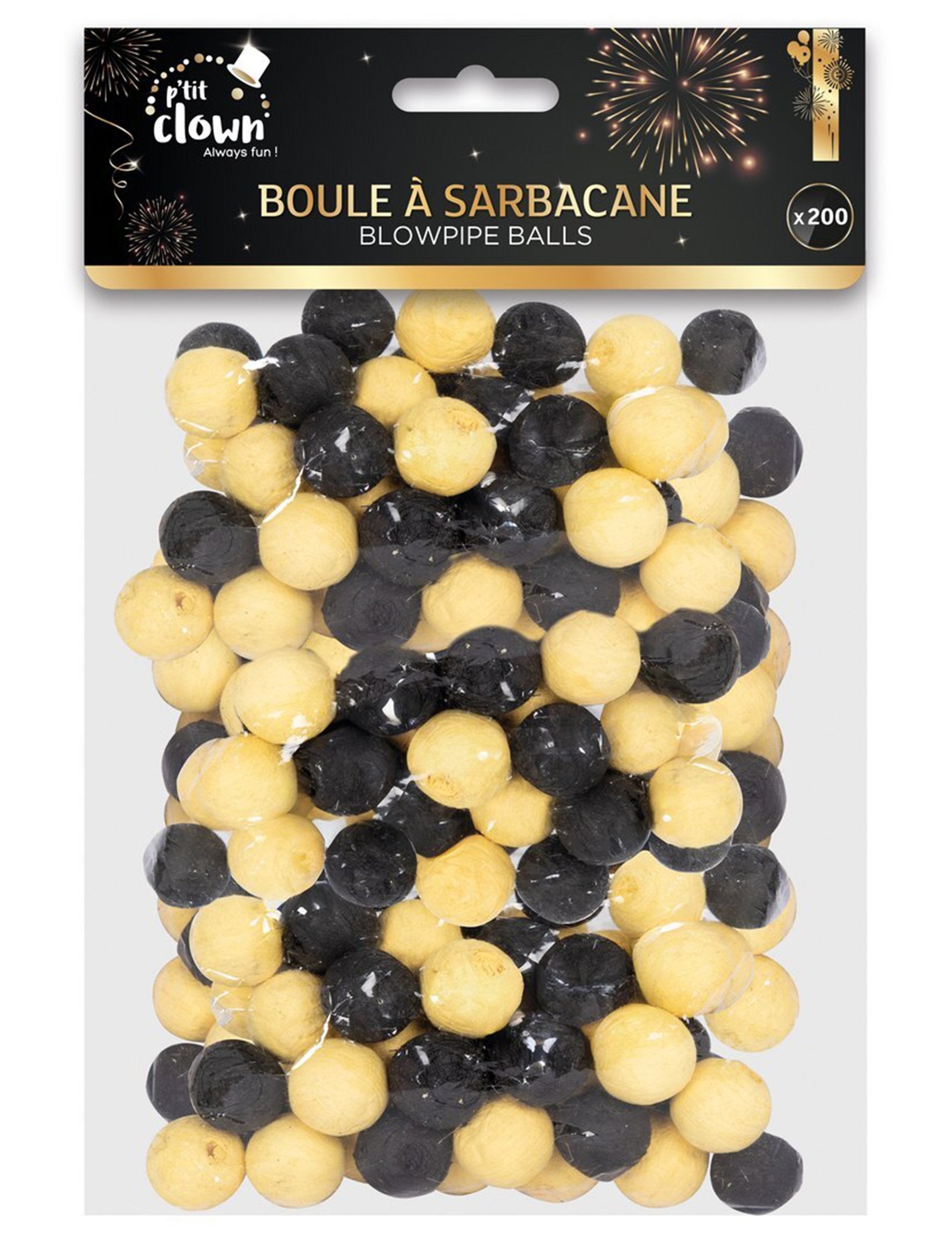 200 crno-zlatnih kuglica za puhalicu nude skladnu kombinaciju boja koja se lako uklapa u svaku proslavu. Njihova izdašna količina omogućuje dugotrajnu zabavu, dok spoj crne i zlatne daje elegantan izgled. Ove kuglice savršeno upotpunjuju stol za slavlje ili zabavnu aktivnost. Idealne su za rođendan, Novu godinu ili bilo koju drugu veselu proslavu.