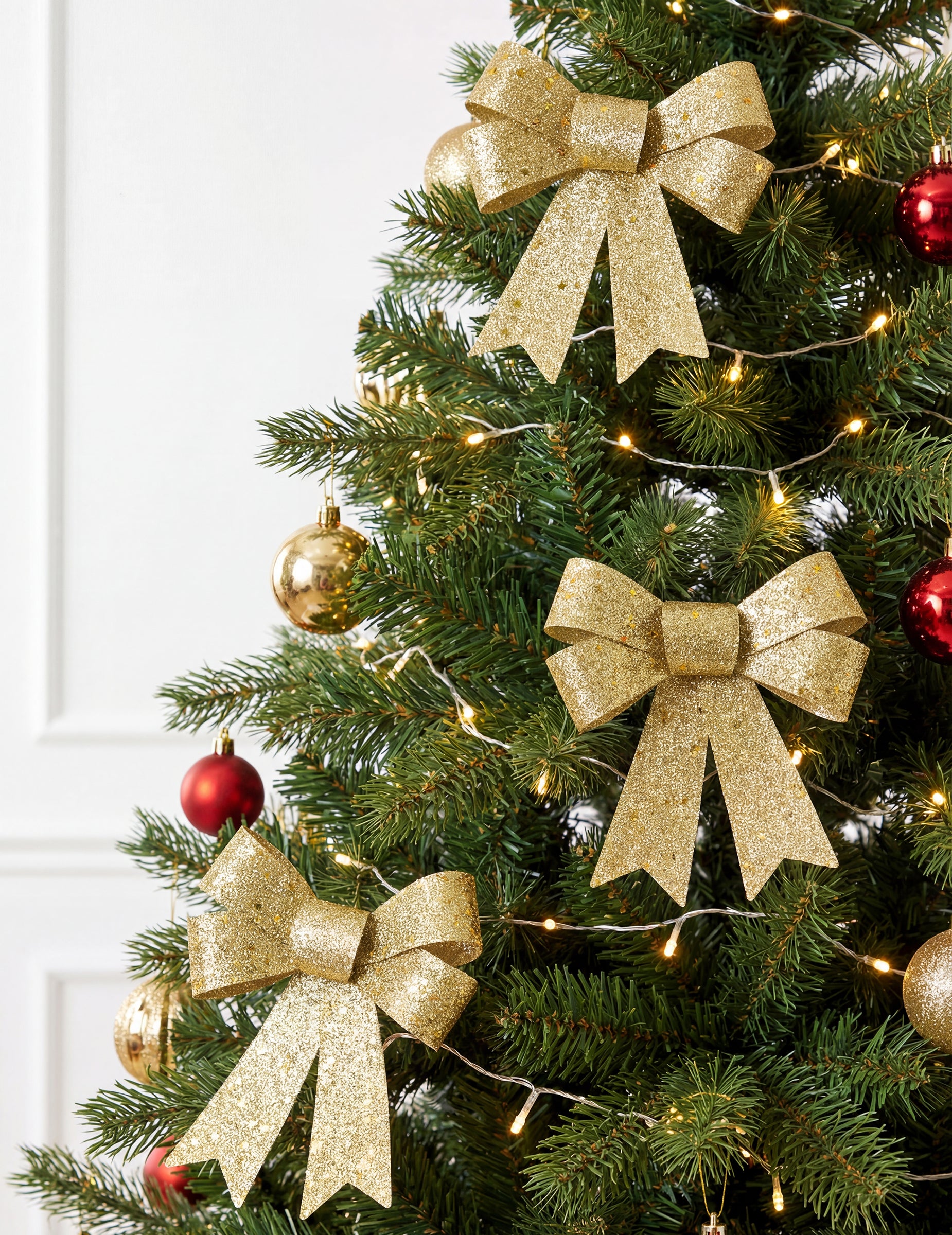3 zlatne mašne sa šljokicama 10 x 13 cm