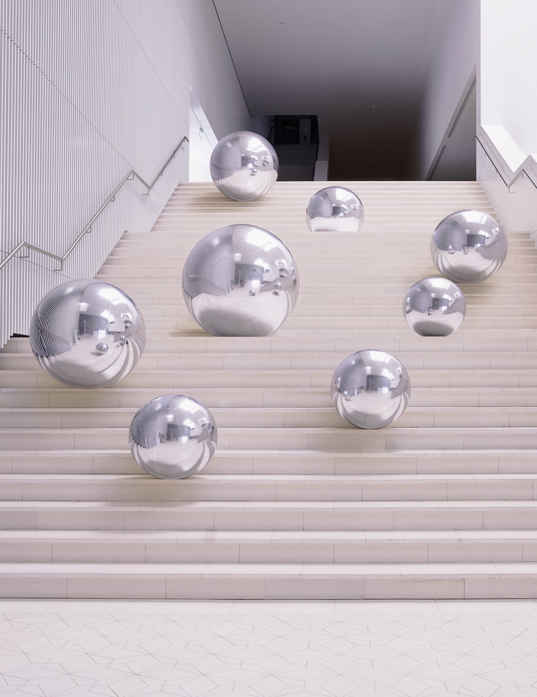 Ima srebrnu zrcalnu površinu koja reflektira svjetlost i okolne elemente. Njezin sferični oblik i promjer od otprilike 60 cm omogućuju jednostavno uklapanje u dvoranu, prostor za proslave ili foto kutak.