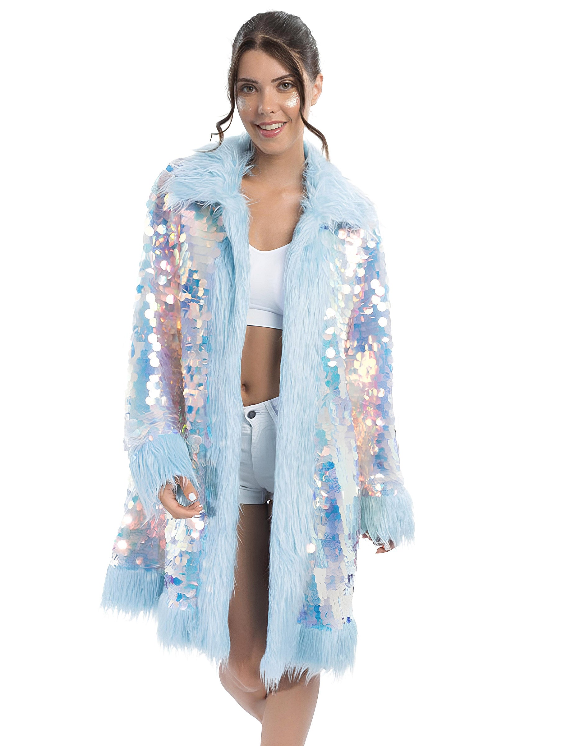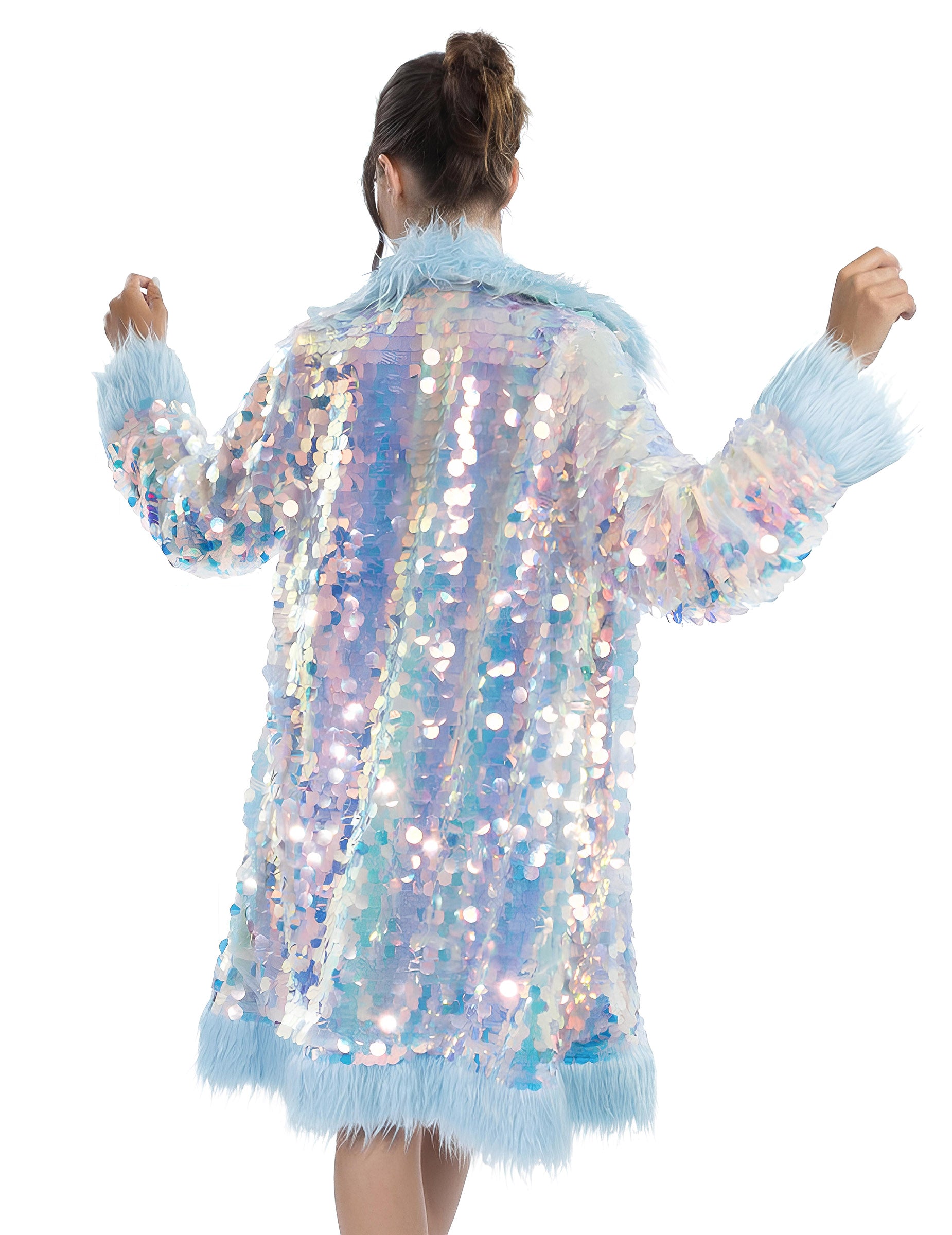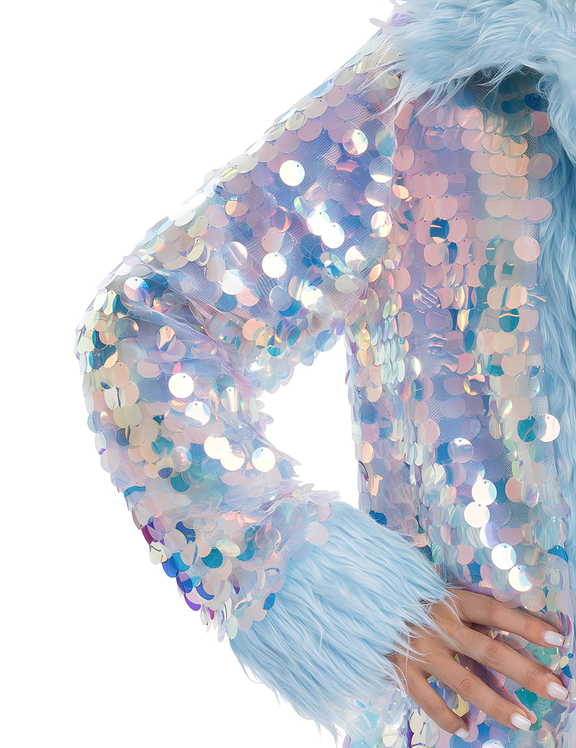 Reverzibilni kaput sa šljokicama i sjajnom plavom tkaninom duginih boja za odrasle idealan je za Karneval, THE Nova godina, disko večer ili maskembal.