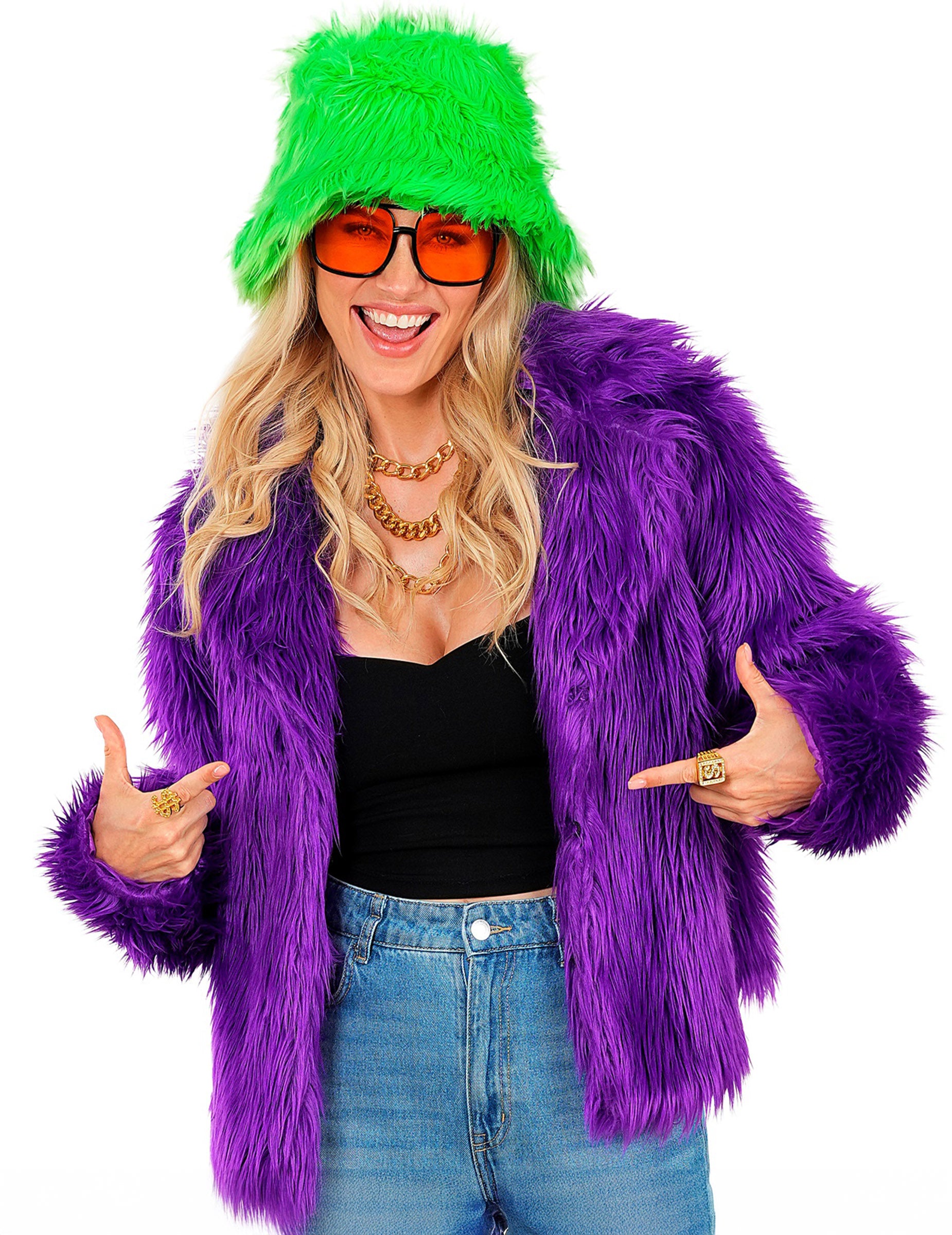 Le manteau en fausse fourrure violet adulte est adapté pour le Carnaval, le Nouvel An, une soirée disco ou une fête déguisée à thème.