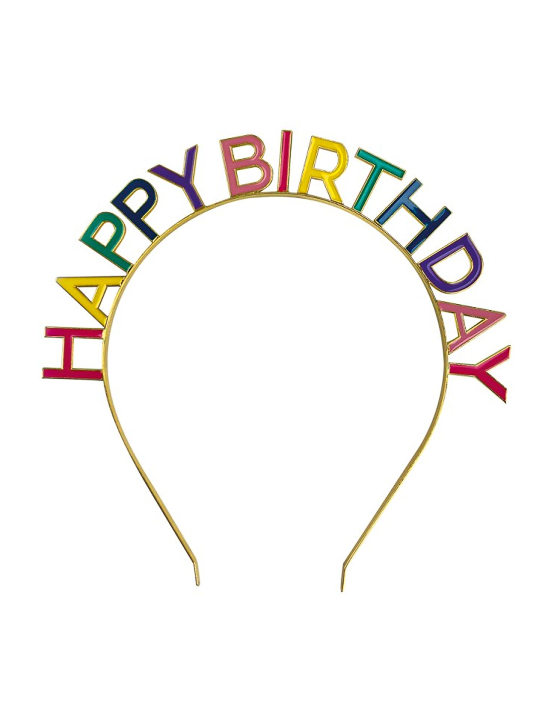 Traka za glavu izrađena je od metala i prekrivena je raznobojnim slovima koja tvore natpis "Sretan rođendan"Različite boje stvaraju upečatljiv kontrast, dok fina struktura omogućuje jednostavnu integraciju u odjevnu kombinaciju za zabavu ili kostim.