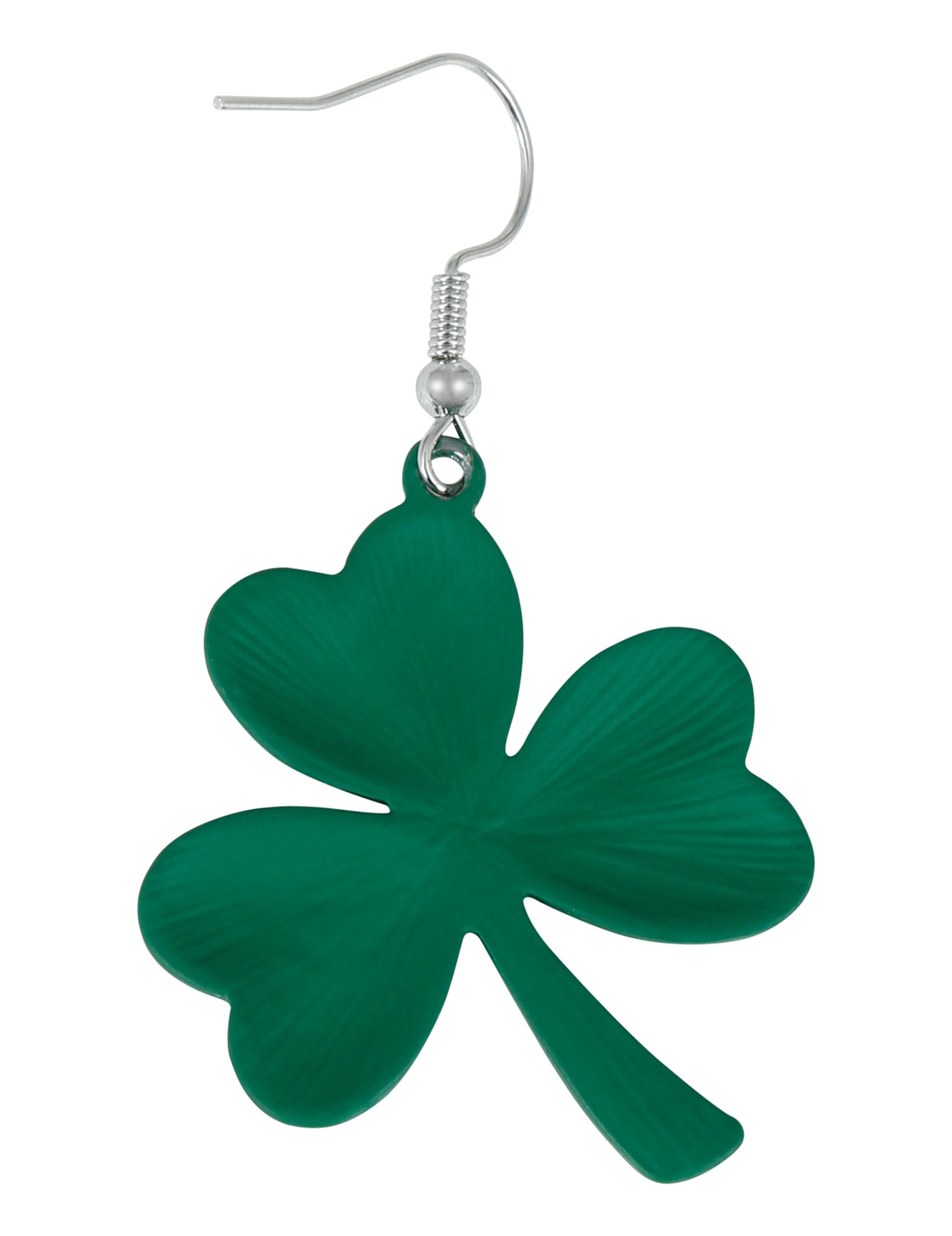 Svaka naušnica prikazuje zelenu djetelinu koja visi na metalnoj kukici, stvarajući lagano njihanje tijekom nošenja. Njihov ravan oblik i jednolična zelena boja podsjećaju na tradicionalni svijet Svetog Patrika i lako se kombiniraju s zelenim kostimom ili irskim maskirnim odijelom.